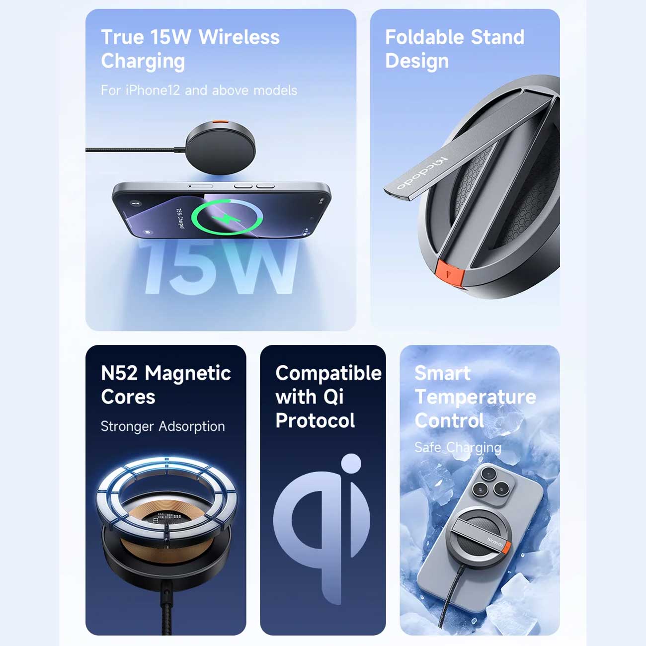 MCDODO CH-550 15W Magnetic Wireless Charger for Phone with Foldable Stand