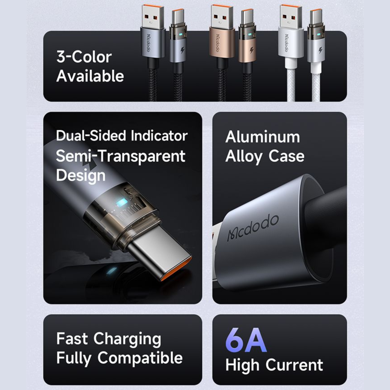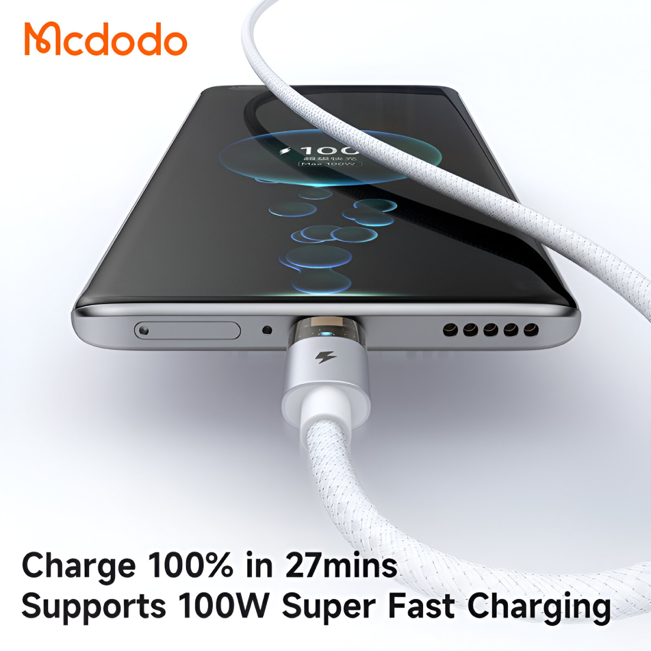 کابل سوپر فست شارژ یو اس بی به تایپ سی شفاف 100 وات 6 آمپر 1.2 متری مک دودو CA-689