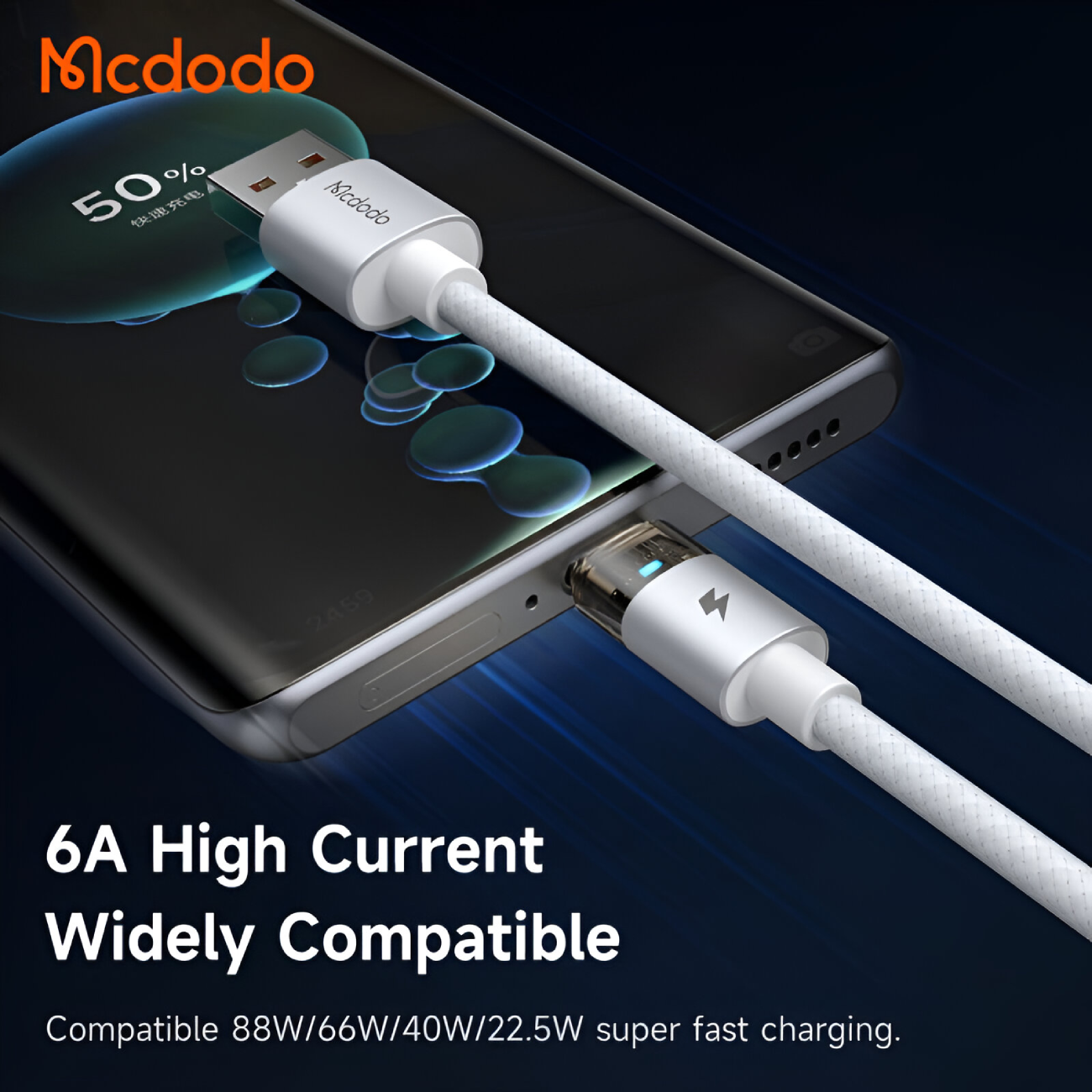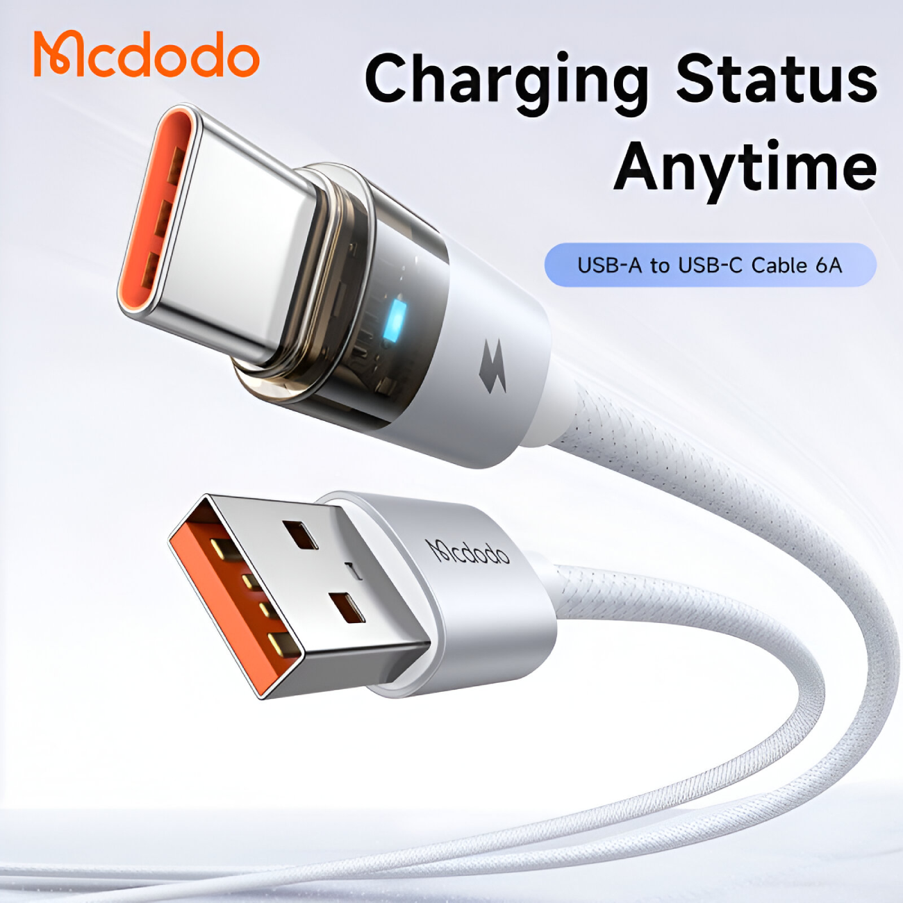 MCDODO CA-689 LED 100W 6A USB-A to Type-c Transparent Cable Charging Light 1.2m