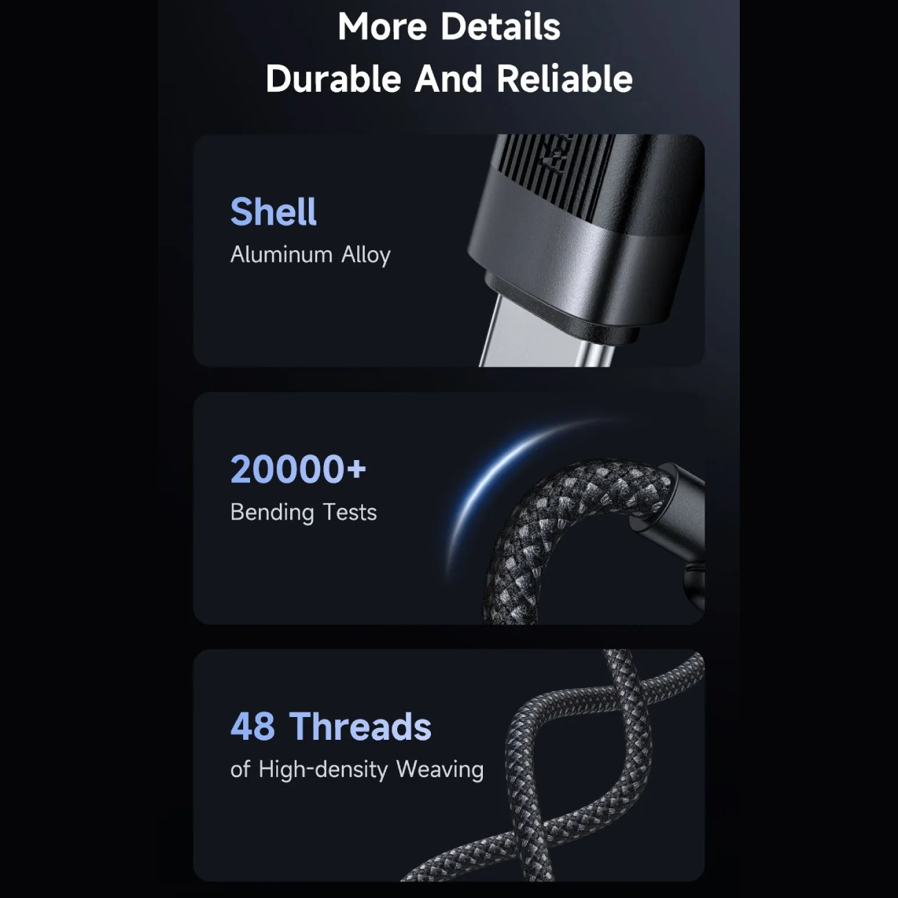 | سایر ویژگیها | - طراحی جمع شونده مغناطیسی - جنس: الیاف نایلون بافته شده+آلیاژ آلومینیوم - مقاوم در برابر خمیدگی و استفاده طولانی مدت - قابلیت تحمل بیش از 20,000 بار خم شدن - مناسب برای شارژ و انتقال اطلاعات - حداکثر شدت جریا خروجی 3 آمپر - مجهز به نشانگر LED |