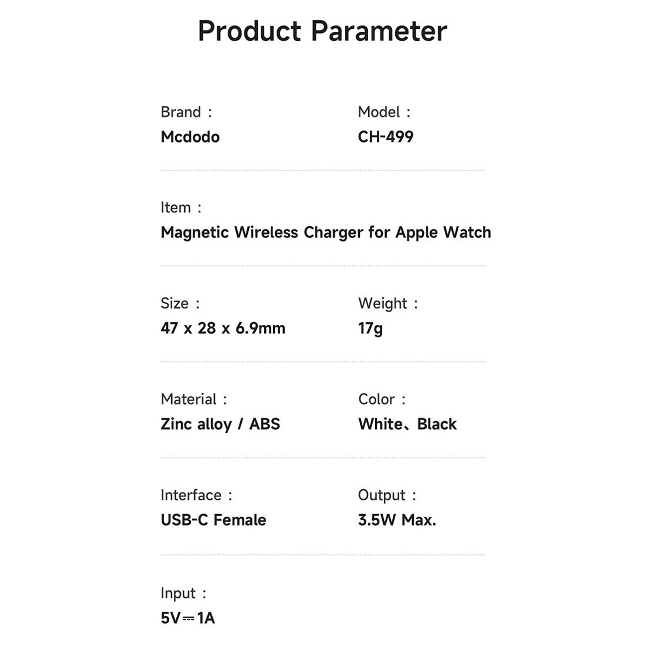 شارژر وایرلس مگنتی اپل واچ 3.5 وات مک دودو CH-4993/CH-4992