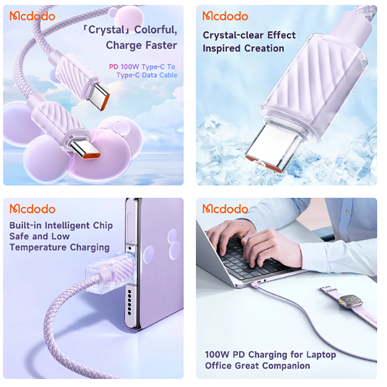 Mcdodo CA-367 Dichromatic Series 100W Type-C to Type-C Data Cable 1.2m