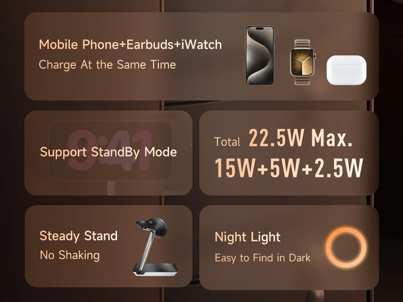 شارژر وایرلس رومیزی 3 کاره 15 وات مک دودو Mcdodo 15W Night Light Magnetic Wireless Charging Station CH-495