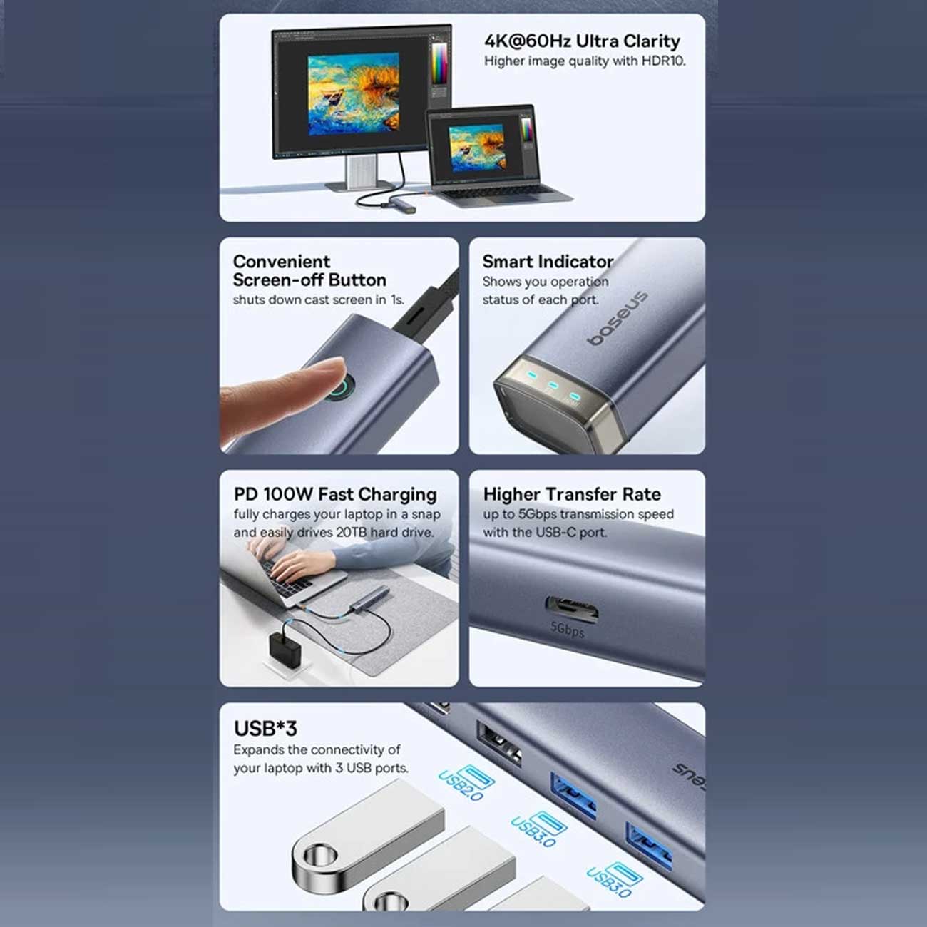 Baseus BS-OH166 UltraJoy Series 6 in 1 Type-C Port HUB