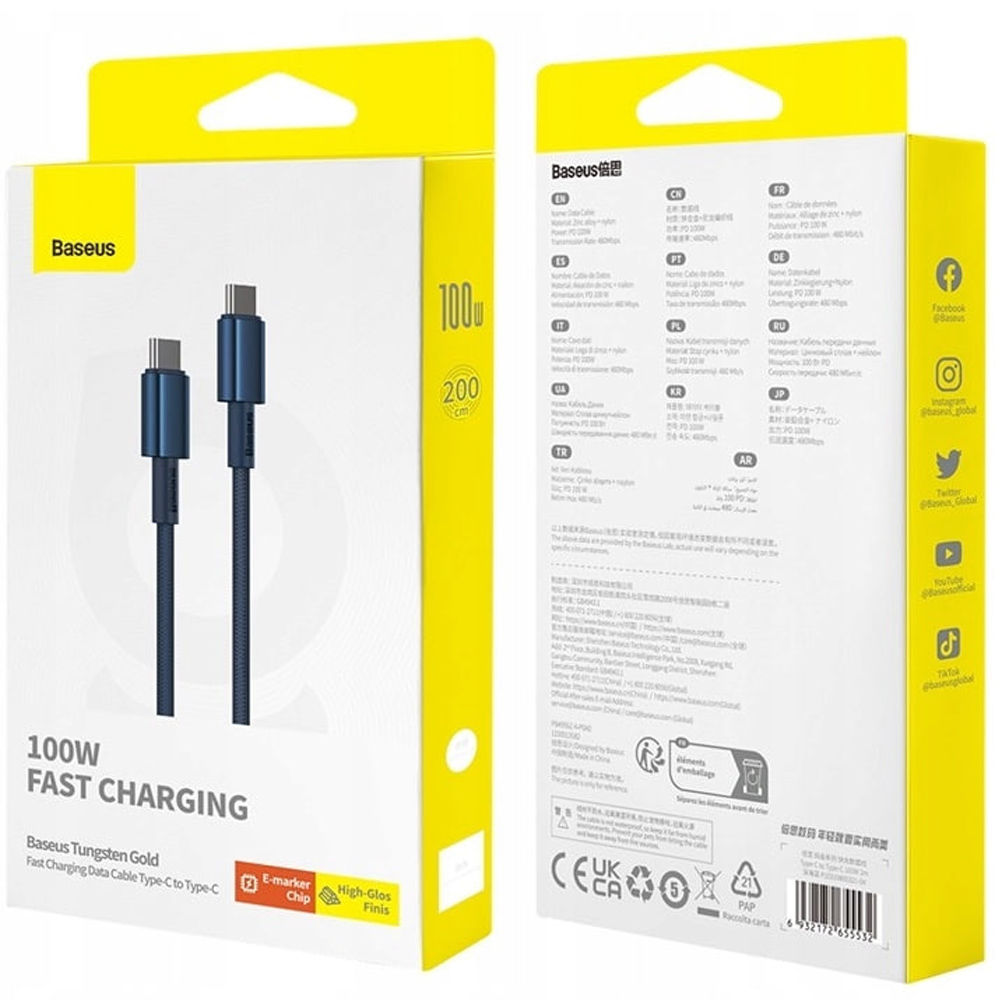 Baseus P10319800321-04Tungsten USB 2.0 Cable USB-C male - USB-C 100W 2m / P10319800G21-01