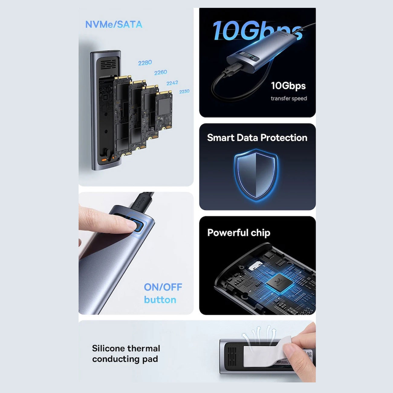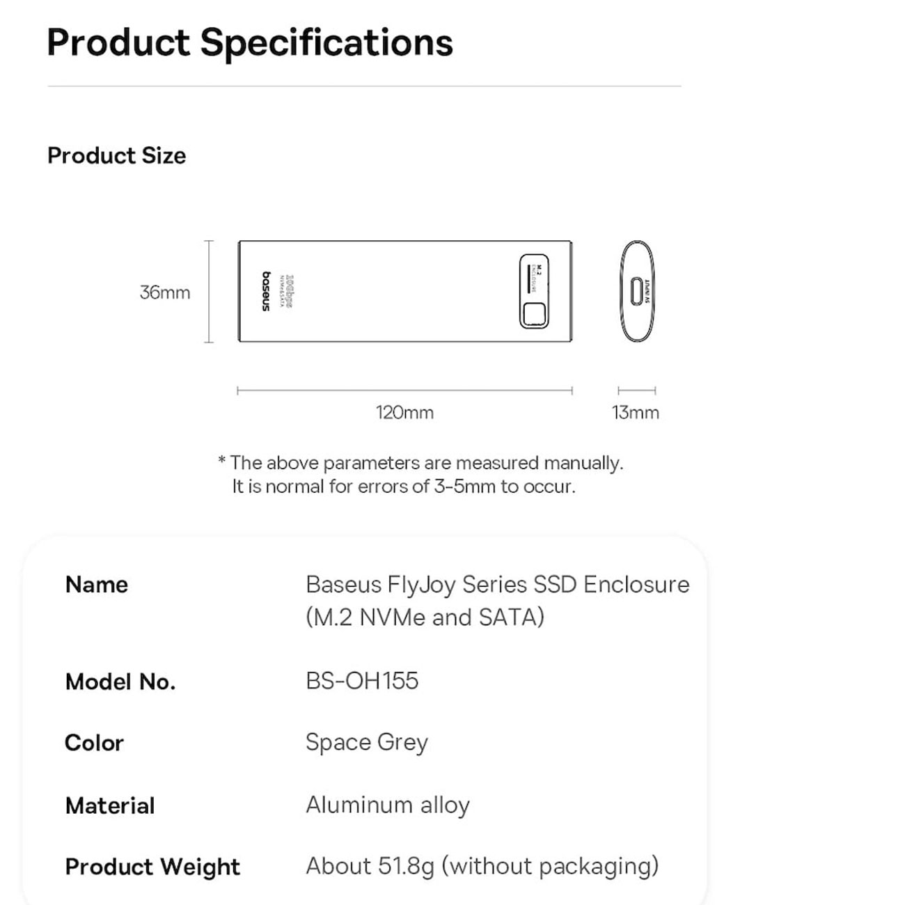 Baseus FlyJoy Series SSD Enclosure(M.2 NVMe and SATA) B00760600811-02 BS-0H155