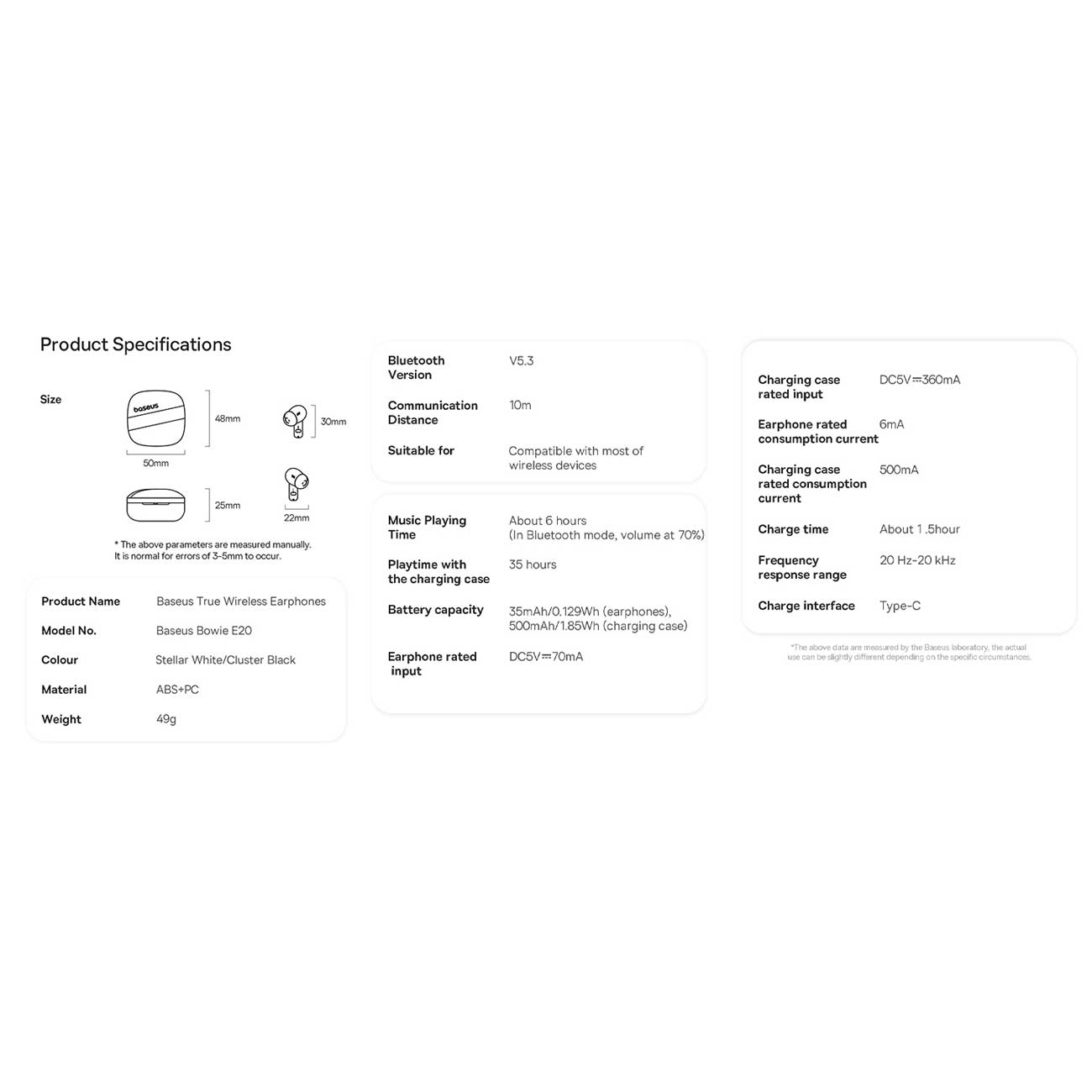 Baseus Bowie E20 True Wireless Earphones Cluster A00069700113-00