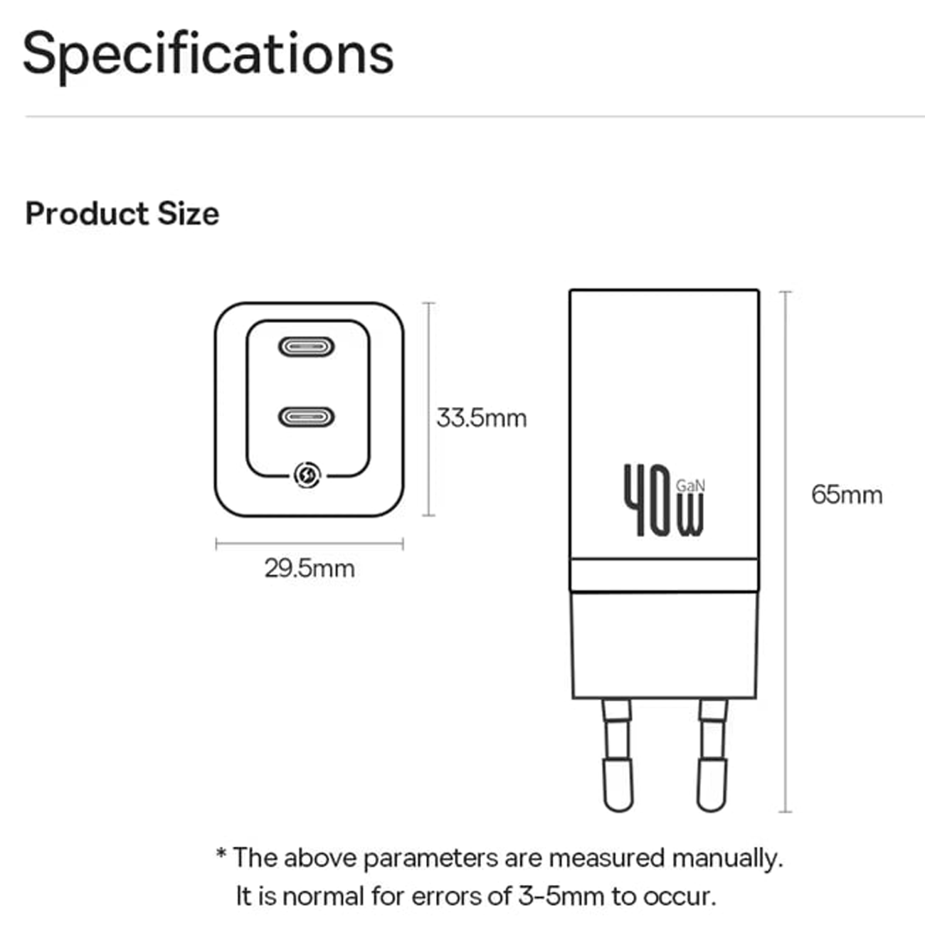 Baseus GaN5 Pro Fast Charger C+C 40W EU CCGAN40CE-M CCGP180101