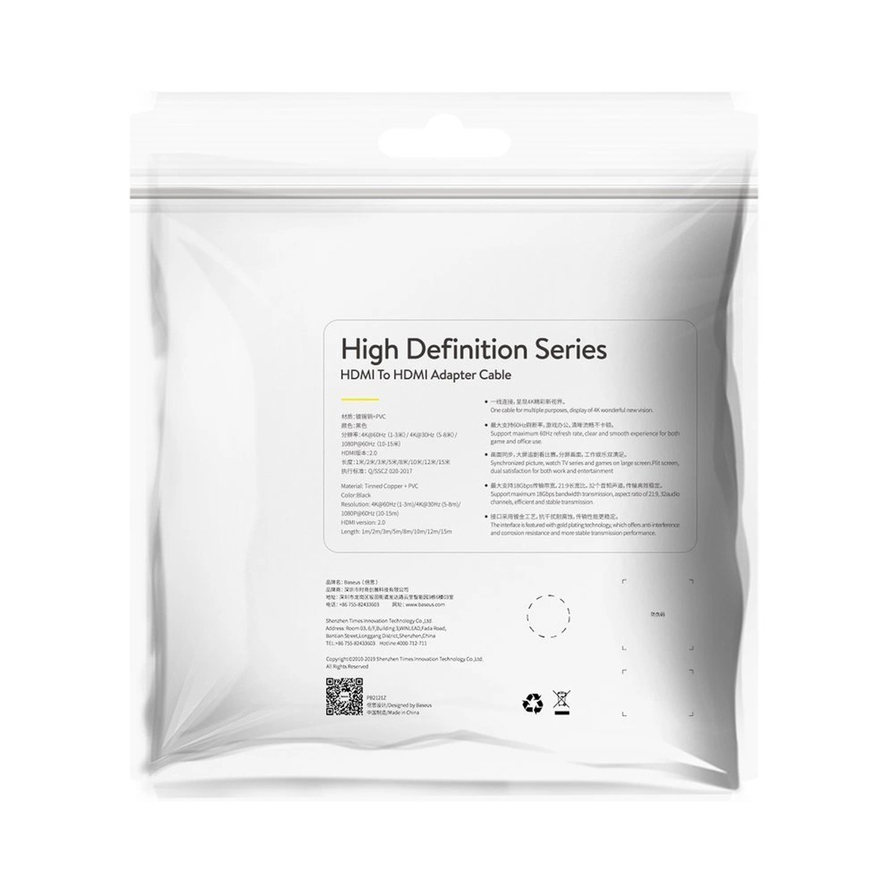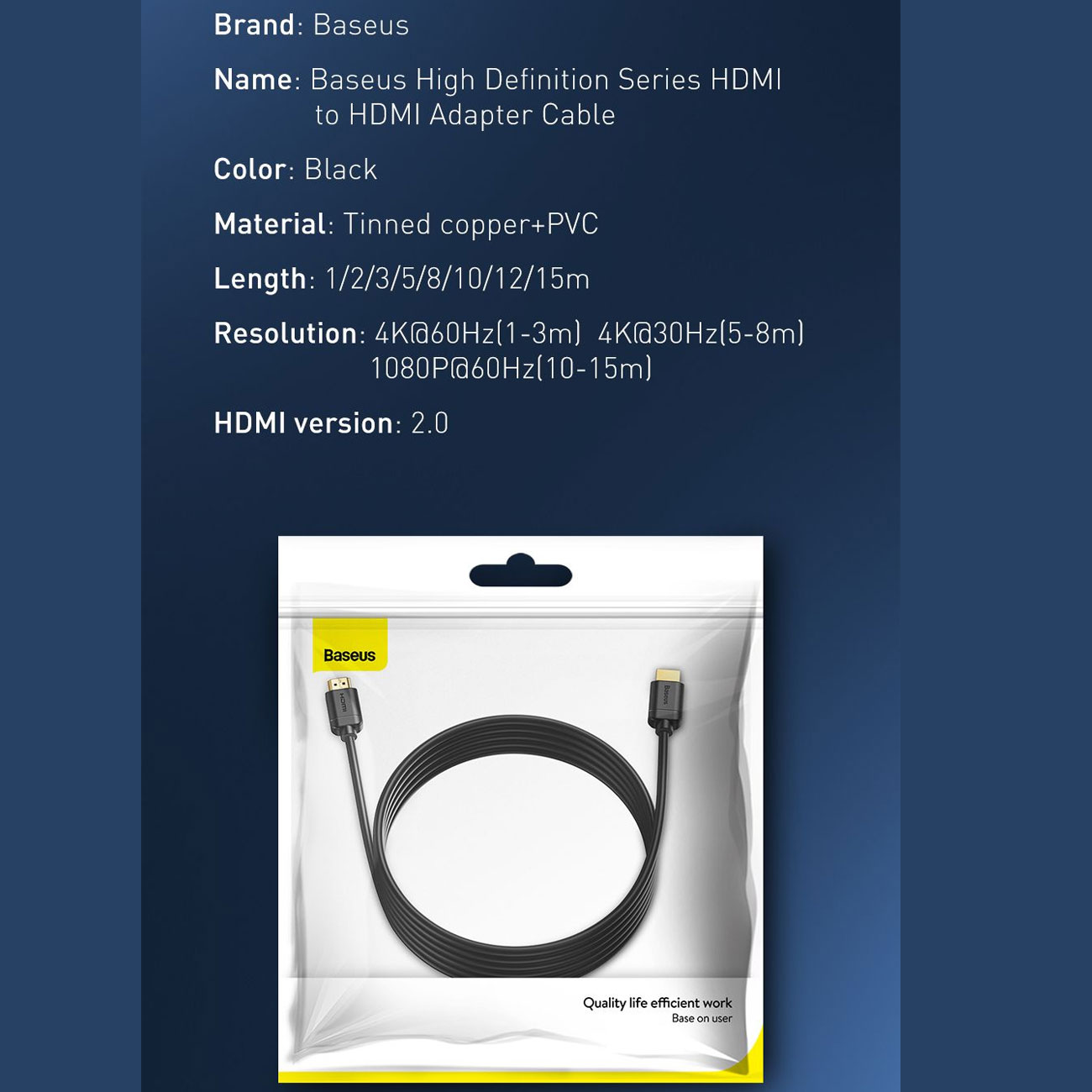 Baseus cable HDMI 2.0 cable 4K 60 Hz 3D HDR 18 Gbps 1 m CAKGQ-A01