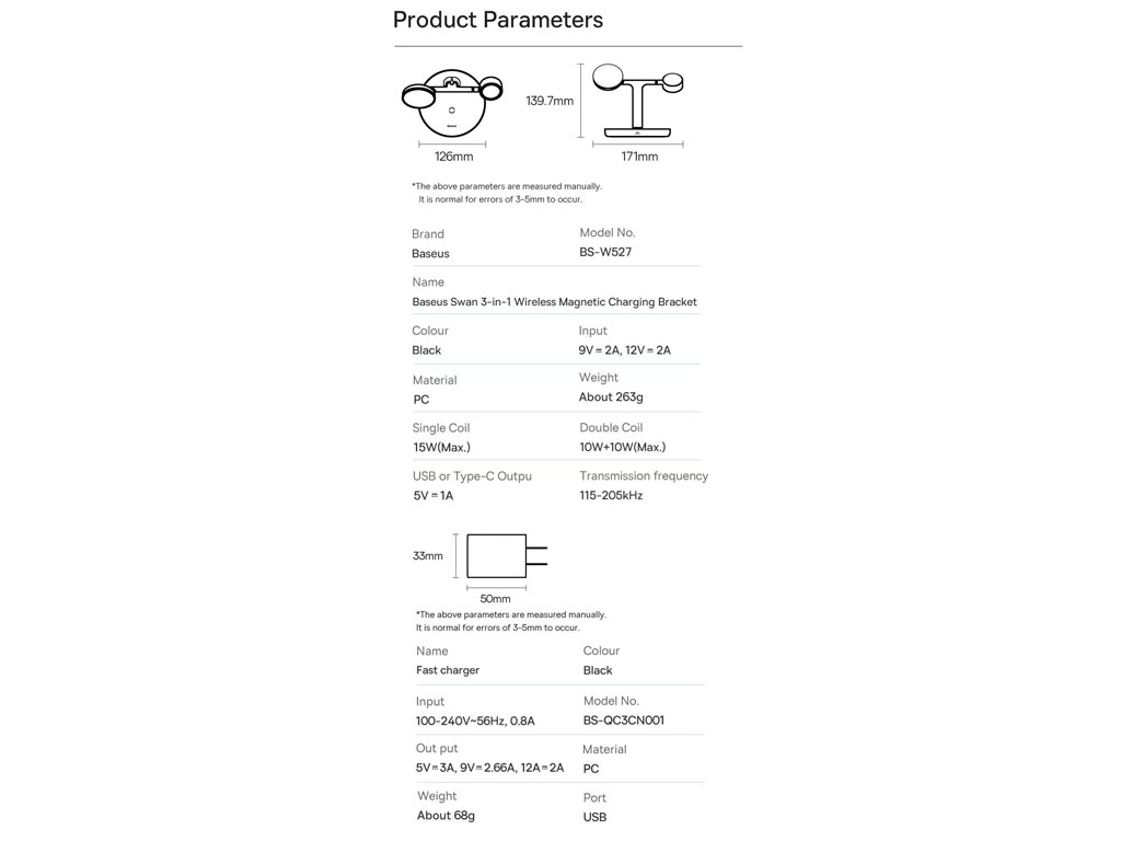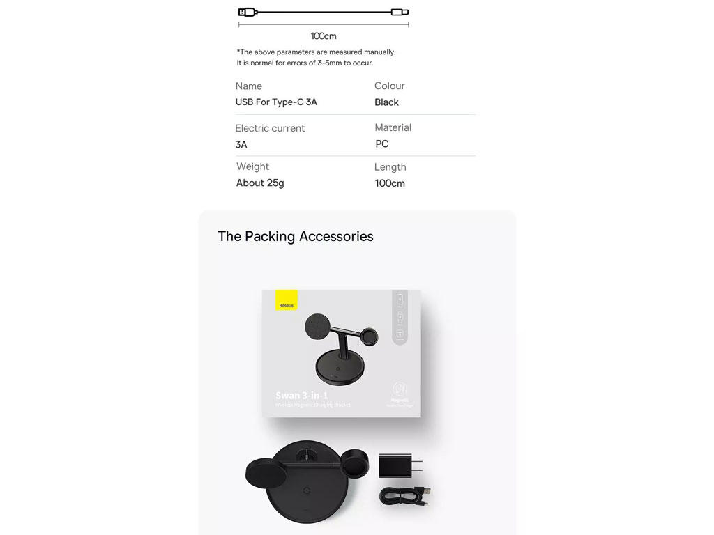Baseus Swan 3-in-1 Wireless Magnetic Charging Bracket 20W WXTE000001 BS-W527