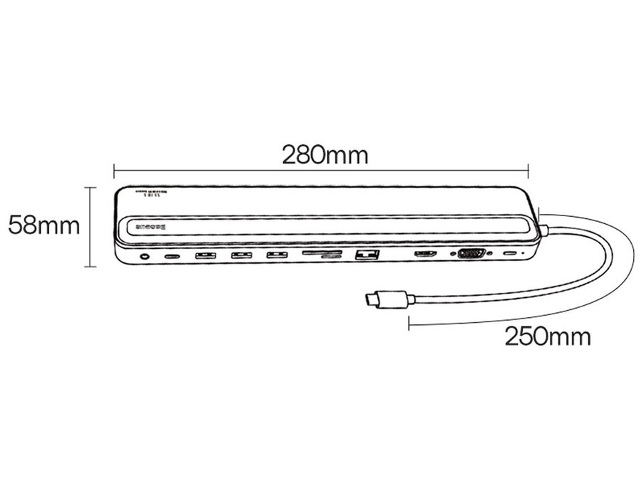 | مشخصات هاب تایپ سی 11 پورت و پایه لپ تاپ بیسوس WKSX030013 | |