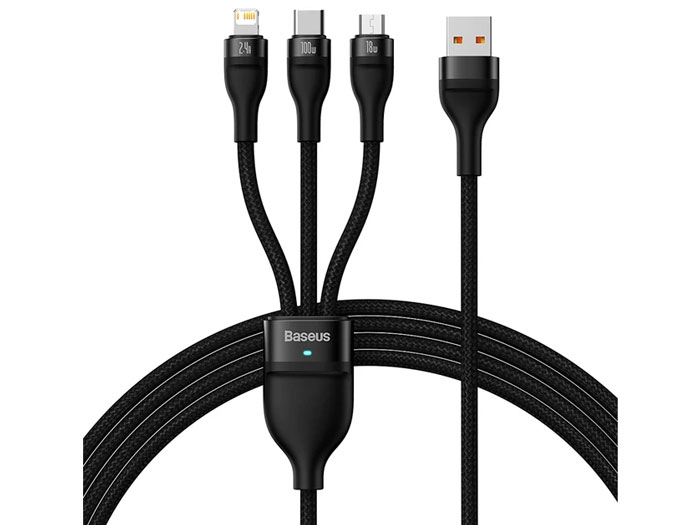 کابل شارژ و دیتا سهسر میکرو، تایپسی و لایتنینگ بیسوس Baseus Flash Series One-for-three Fast Charging Data Cable USB (CASS040001)