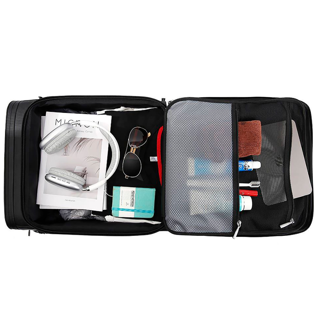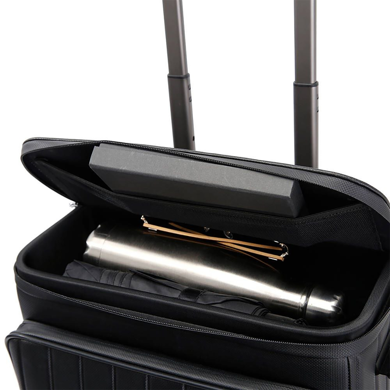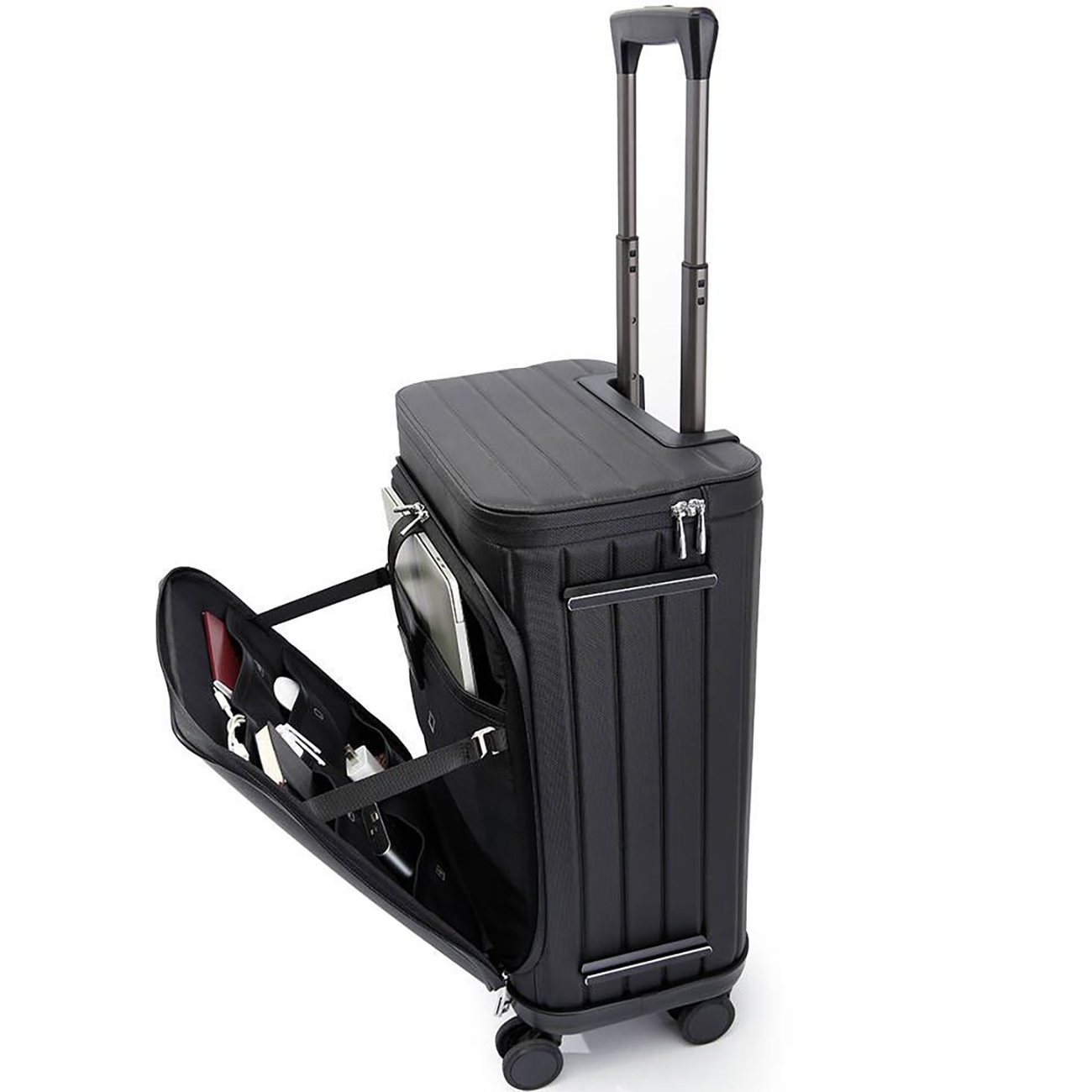 | دارای دستههای کوچکتر و دستی در بالا و کنار چمدان | |