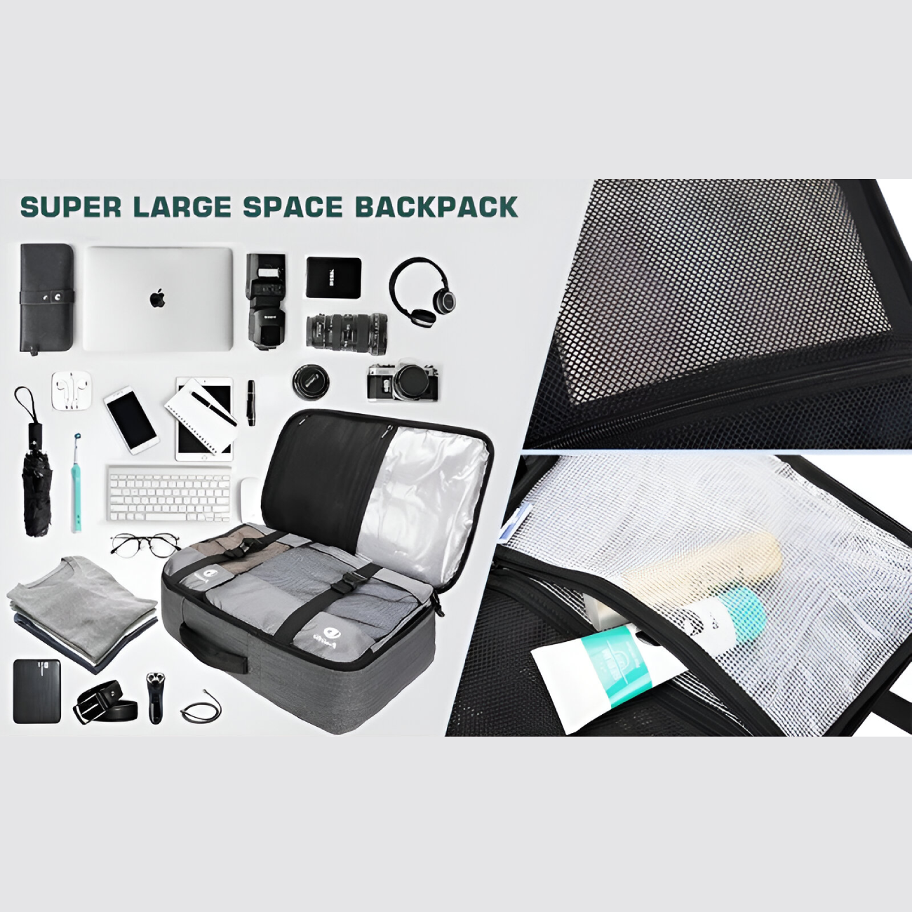 | محتویات همراه | 3 عدد کیف مکعب تفکیکی: بزرگ برای پالتو/شلوار، متوسط برای تیشرت، کوچک برای وسایل آرایشی |