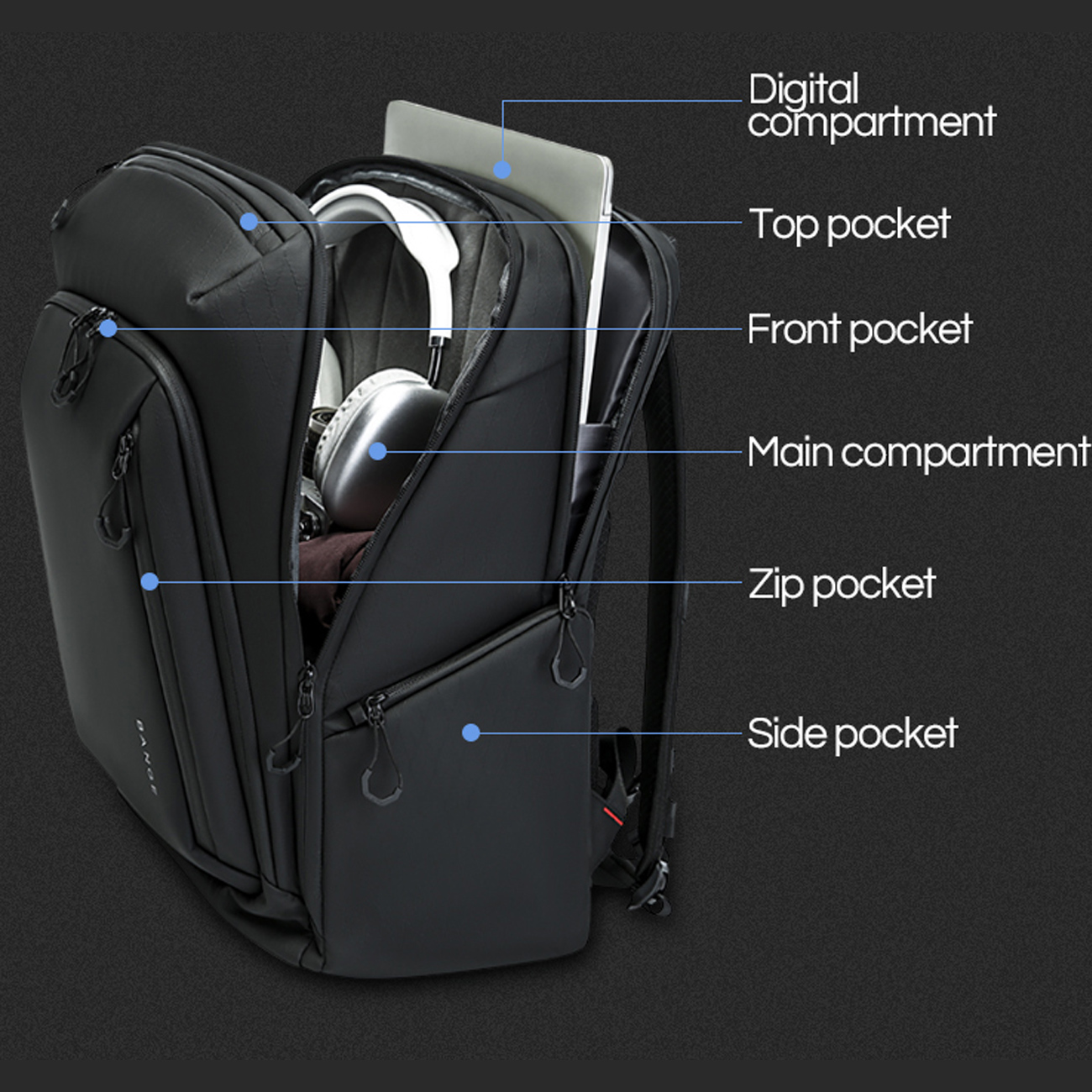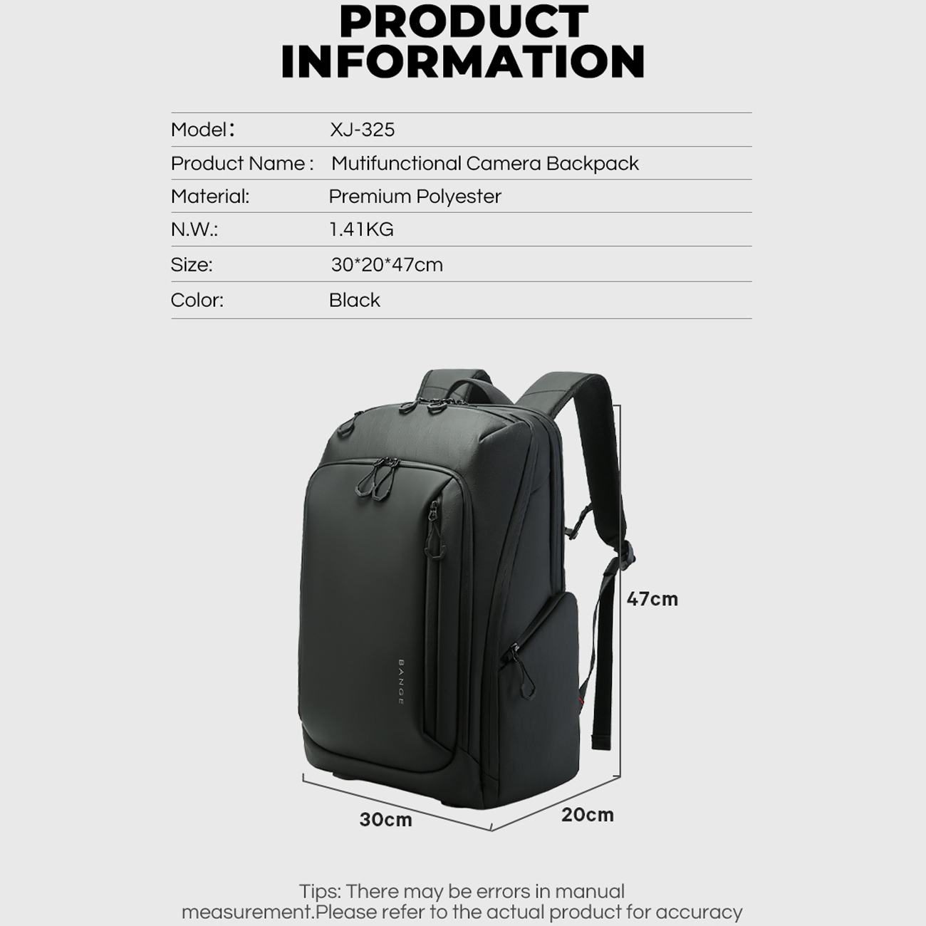 Bange XJ325 backpack, 14" laptop, waterproof, organized, travel-ready