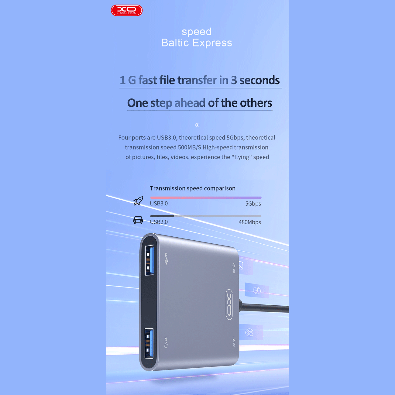 XO HUB012B USB-C 4-Port HUB Docking Station