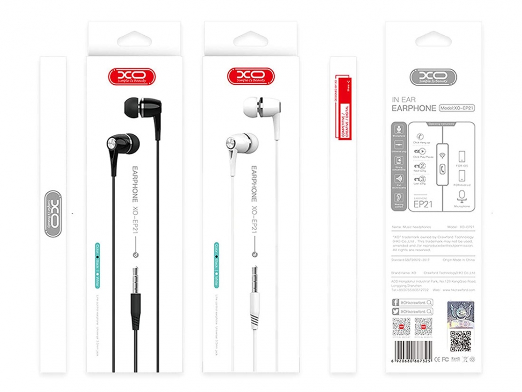 XO In-ear Earphon 1.2m EP31