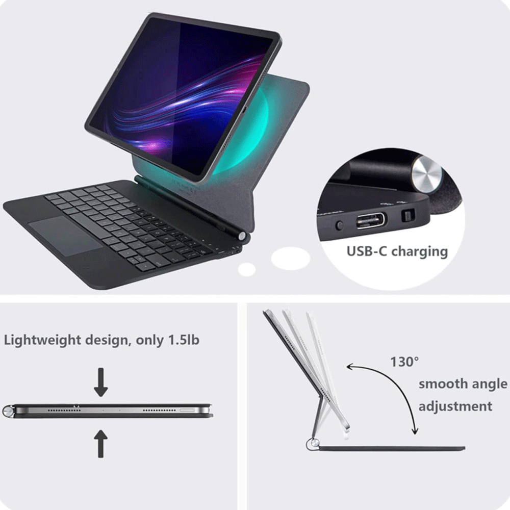 | قابلیت ها | استفاده به عنوان استند، محافظ آیپد، اتصال بلوتوثی پایدار، شارژ از طریق USB-C |