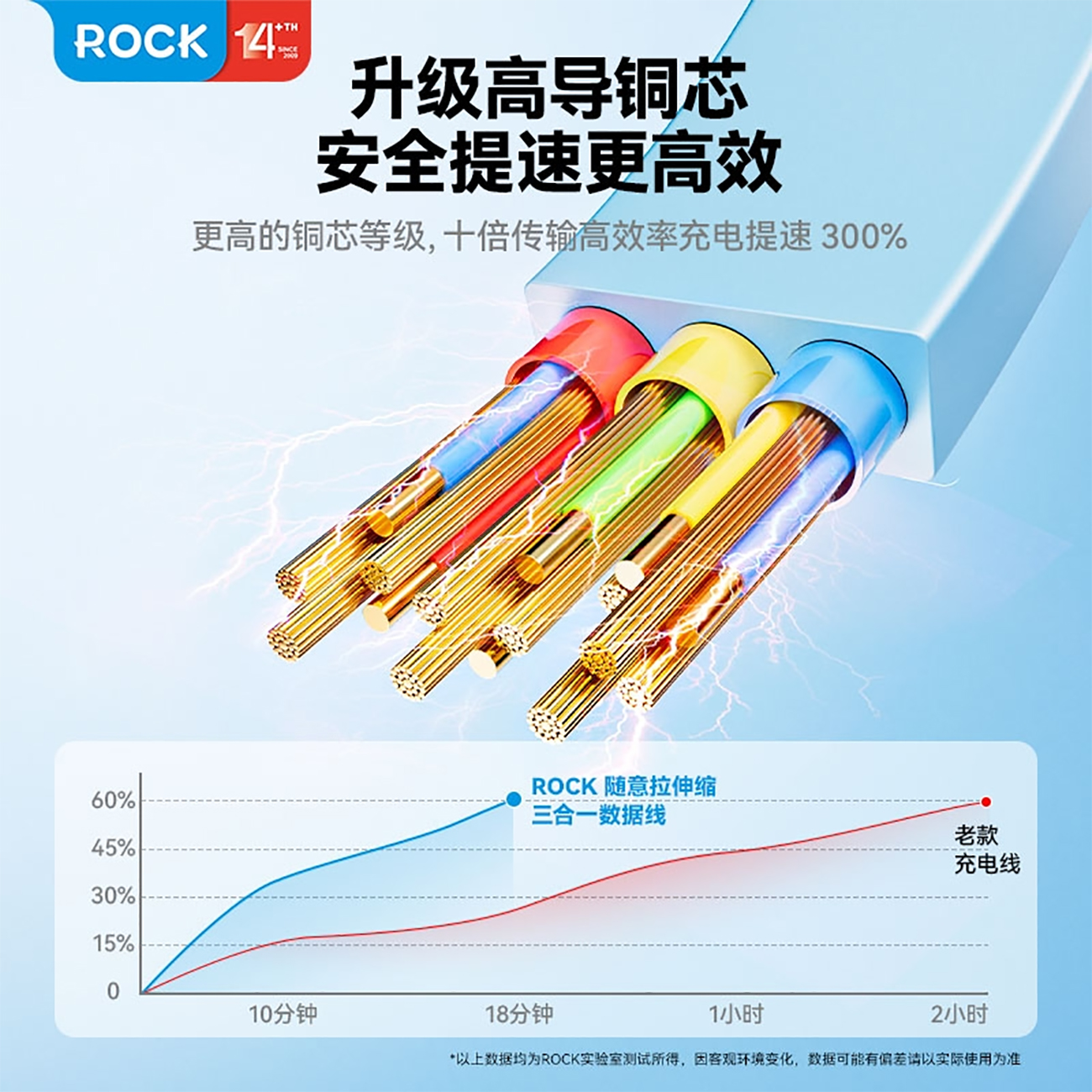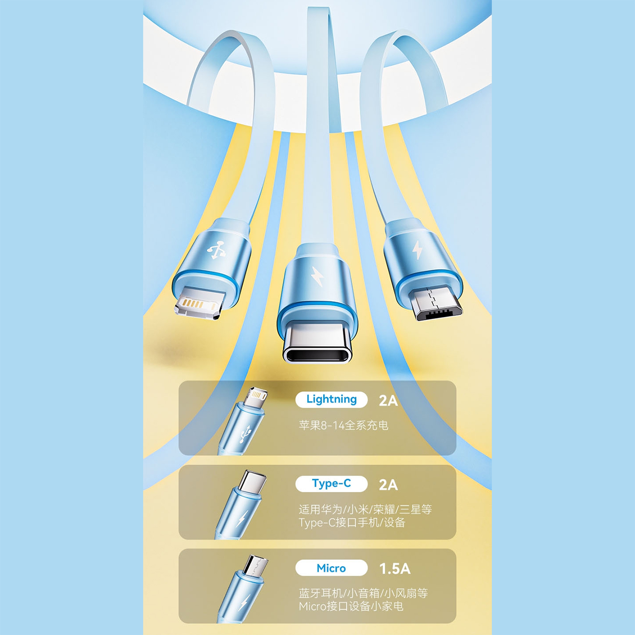 ROCK RCB0864 Retractable USB to Lightning / Type-C / micro USB Cable