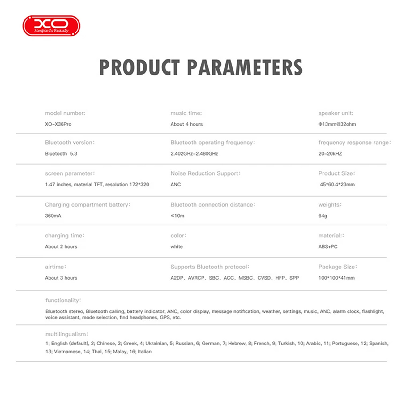XO X36 PRO Bluetooth 5.3 Noise Cancelling ANC Handsfree