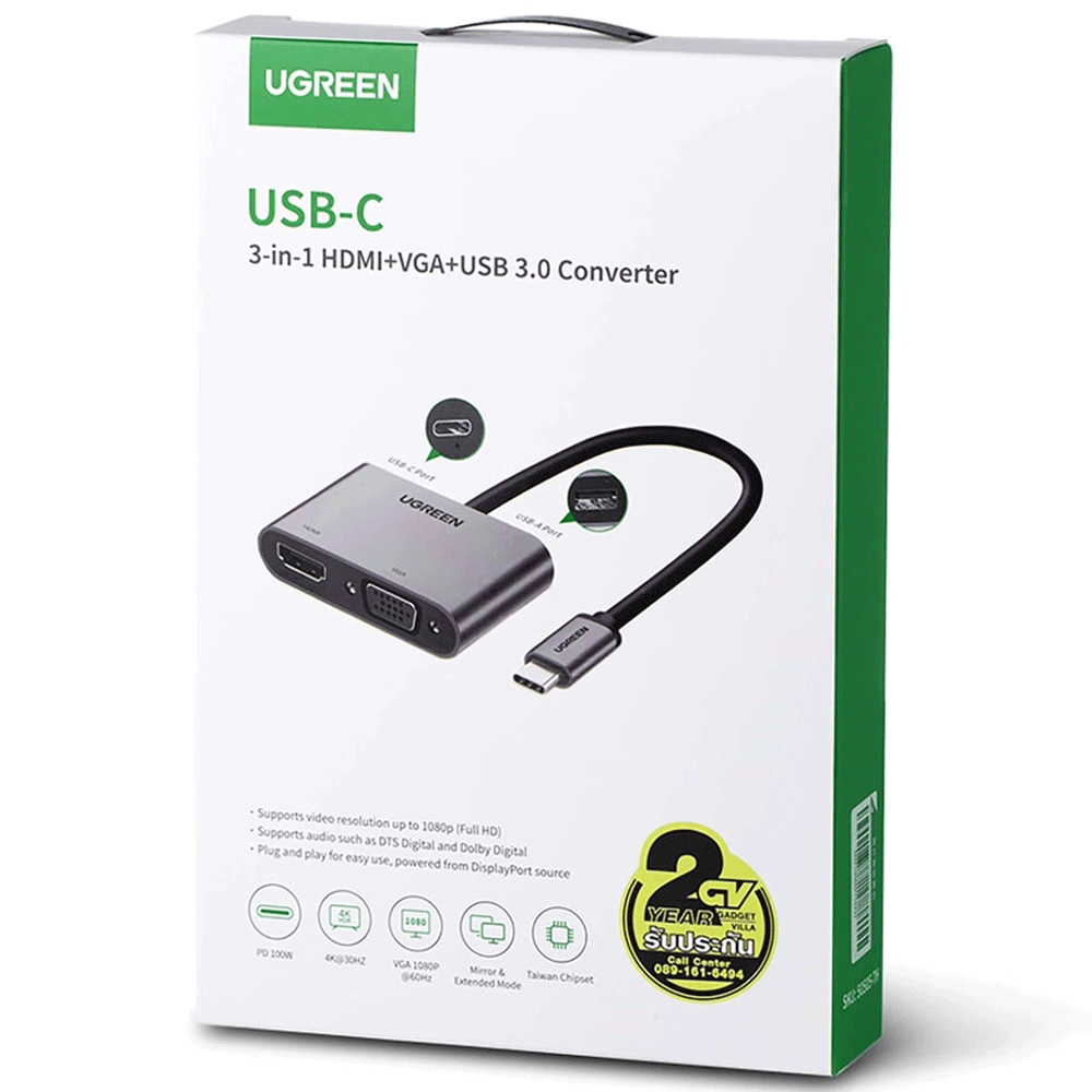 UGREEN CM162 50505 USB-C to HDMI + VGA +USB 3.0 Adapter with PD 4K