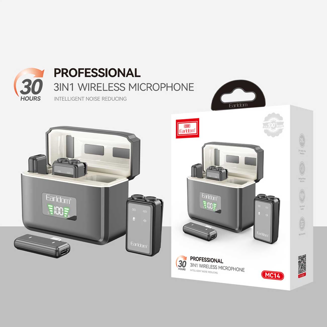 میکروفن یقهای بیسیم تایپسی و لایتنینگ ارلدام MC14 دوکاربره همراه کیس شارژ