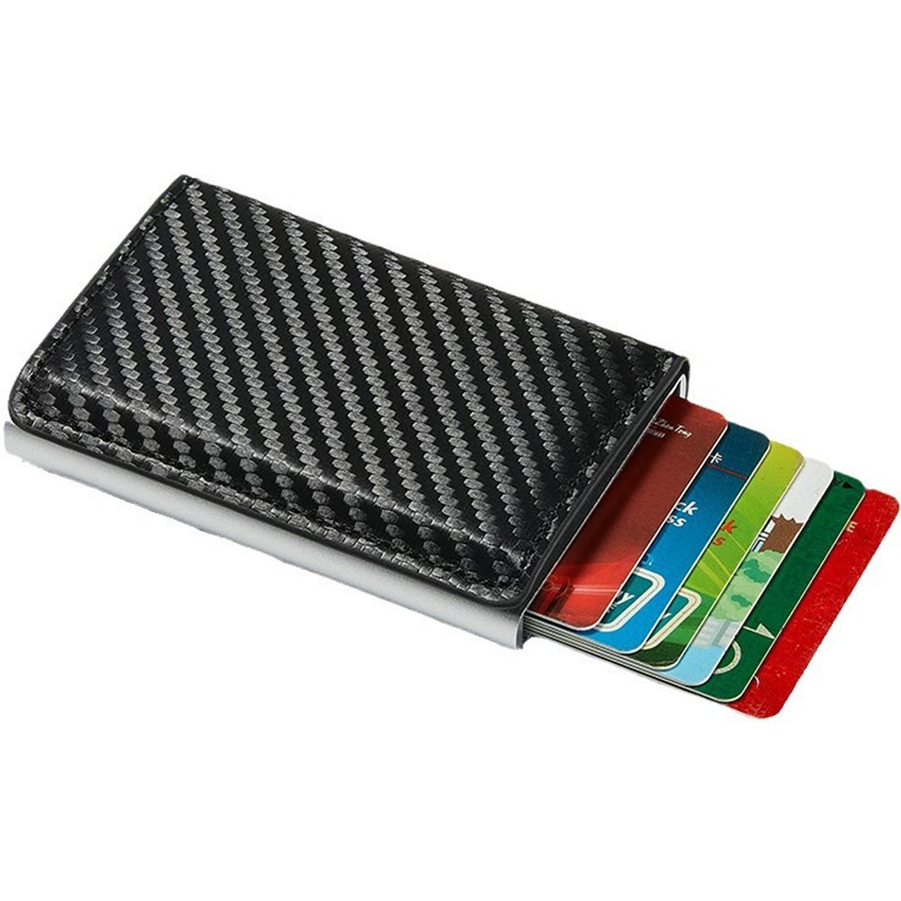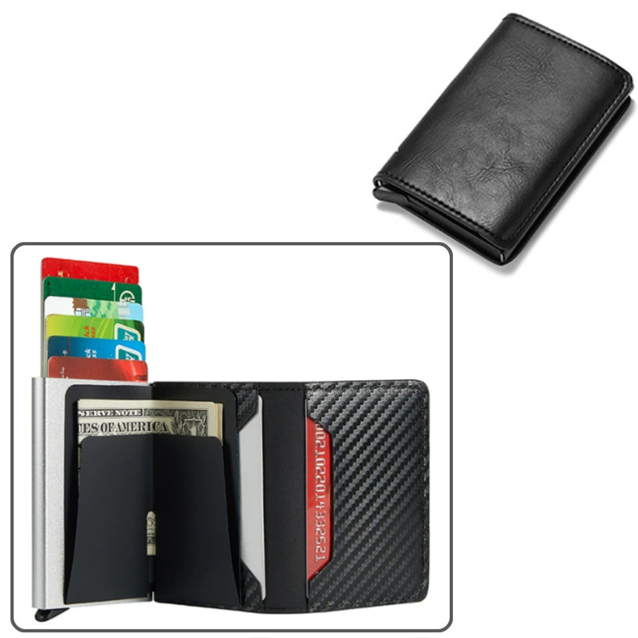 Automatic card box new metal aluminum alloy card holder anti-theft brush credit card holder leather ultra-thin small wallet K01