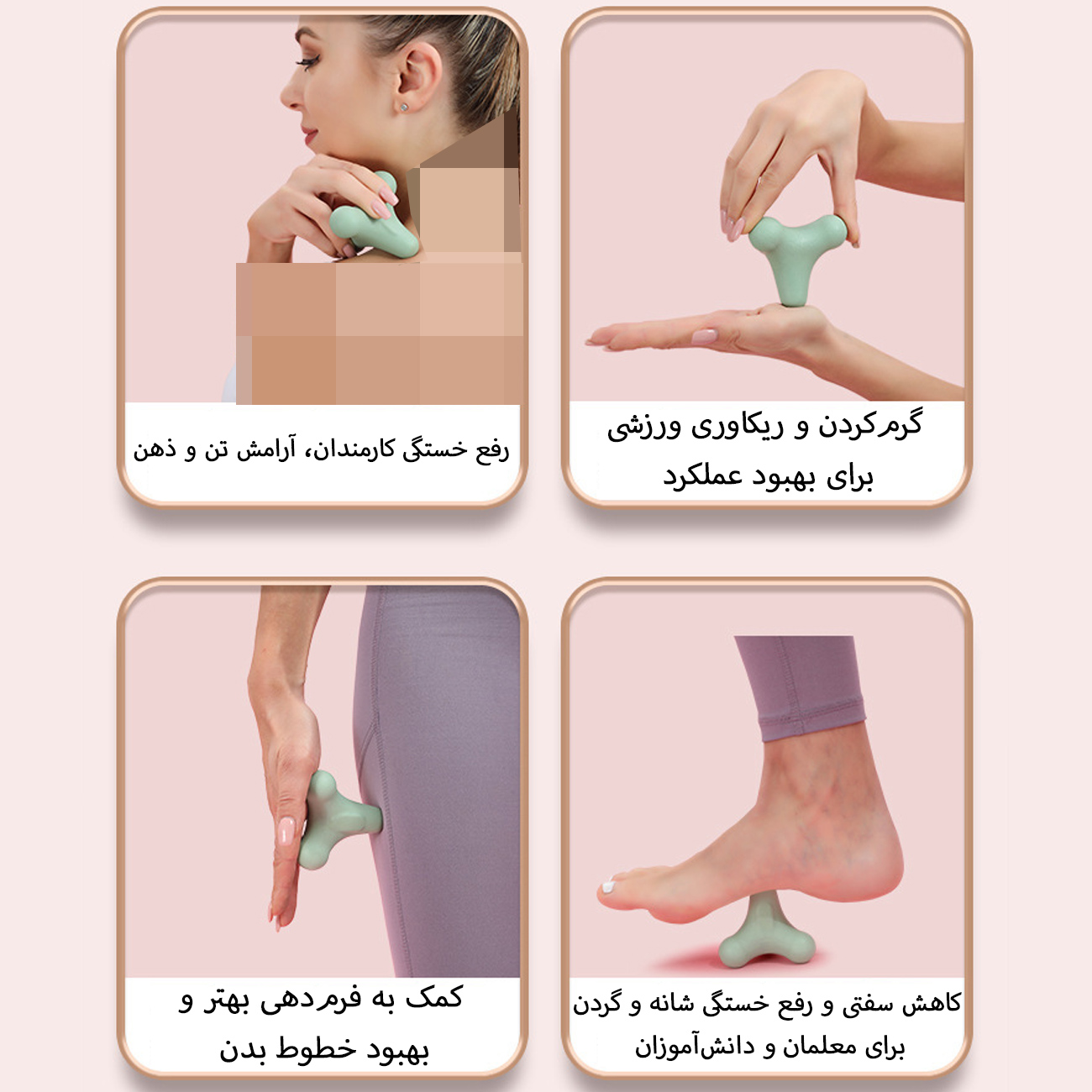 | شیوه استفاده | میتوانید با فشار بدن یا دست ماساژ را انجام دهید؛ مناسب برای خودماساژ |