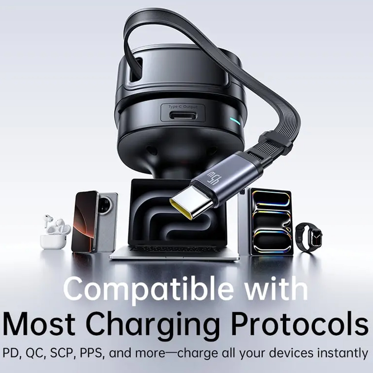 Baseus PrimeTrip VR1 Car Charger with Retractable Cable (U+C)+Type-C 60W BSCC-TX-UC-C