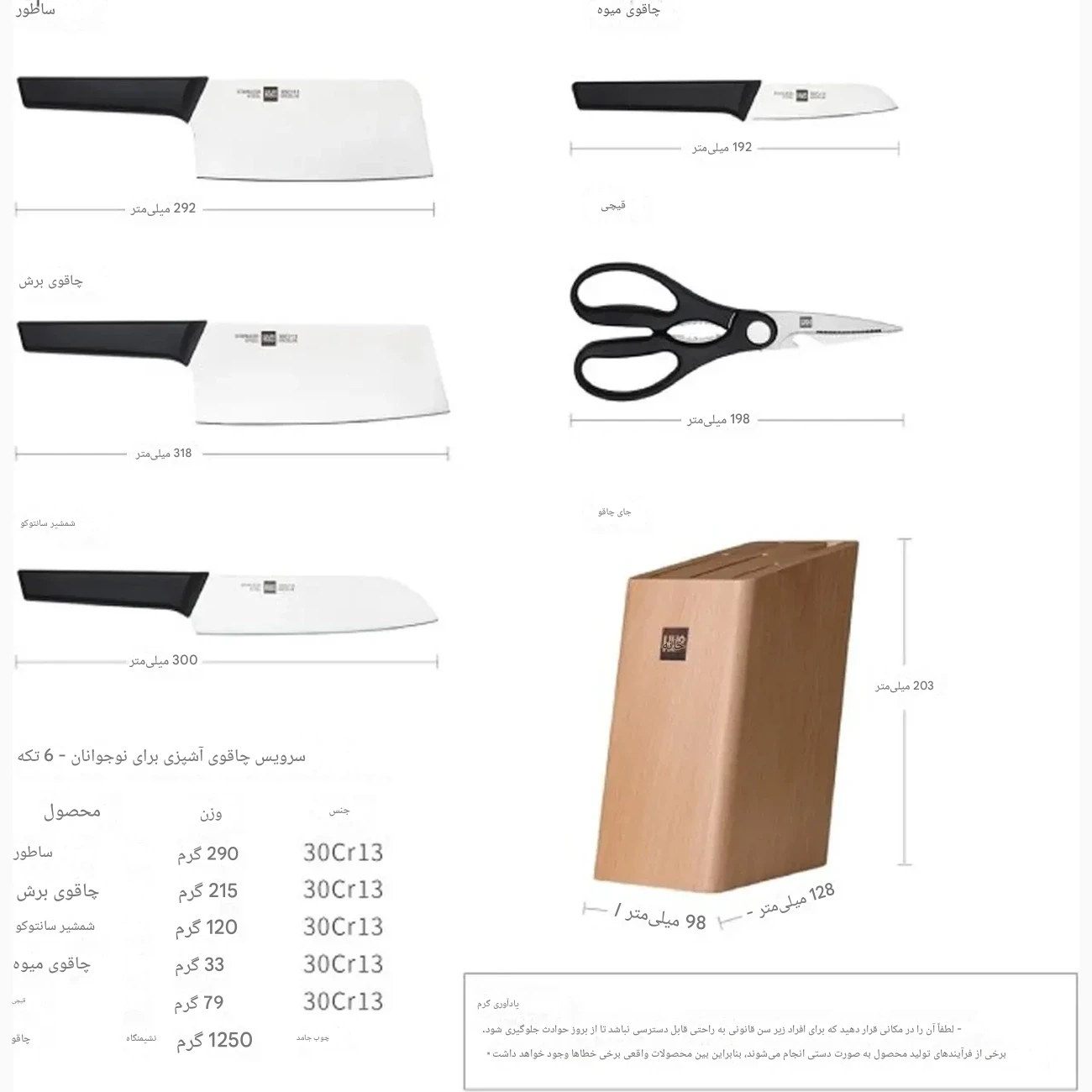 | نکات ایمنی | دور از دسترس کودکان نگهداری شود؛ ممکن است تفاوتهای جزئی به دلیل تولید دستی وجود داشته باشد. |
