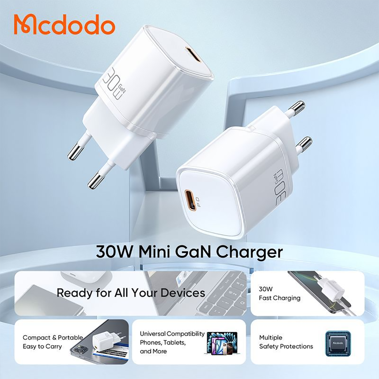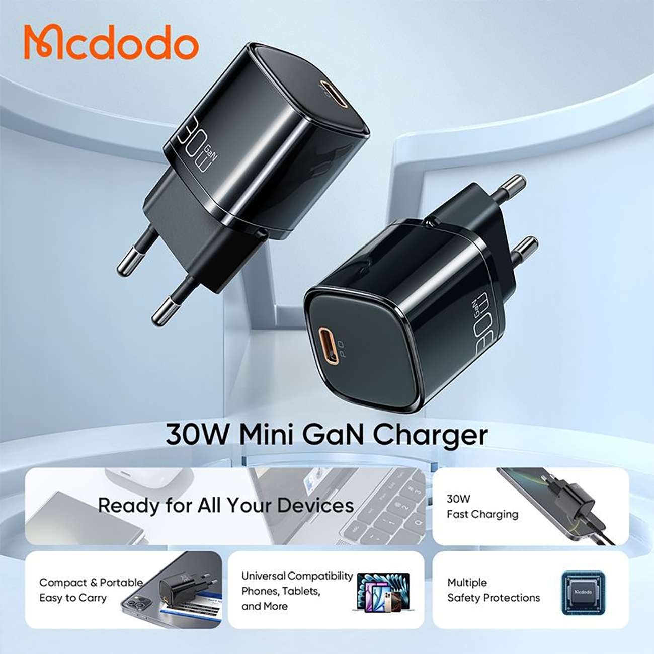 MCDODO CH-0080 / CH-0081 GaN Mini PD Fast Charger 30w (EU plug)