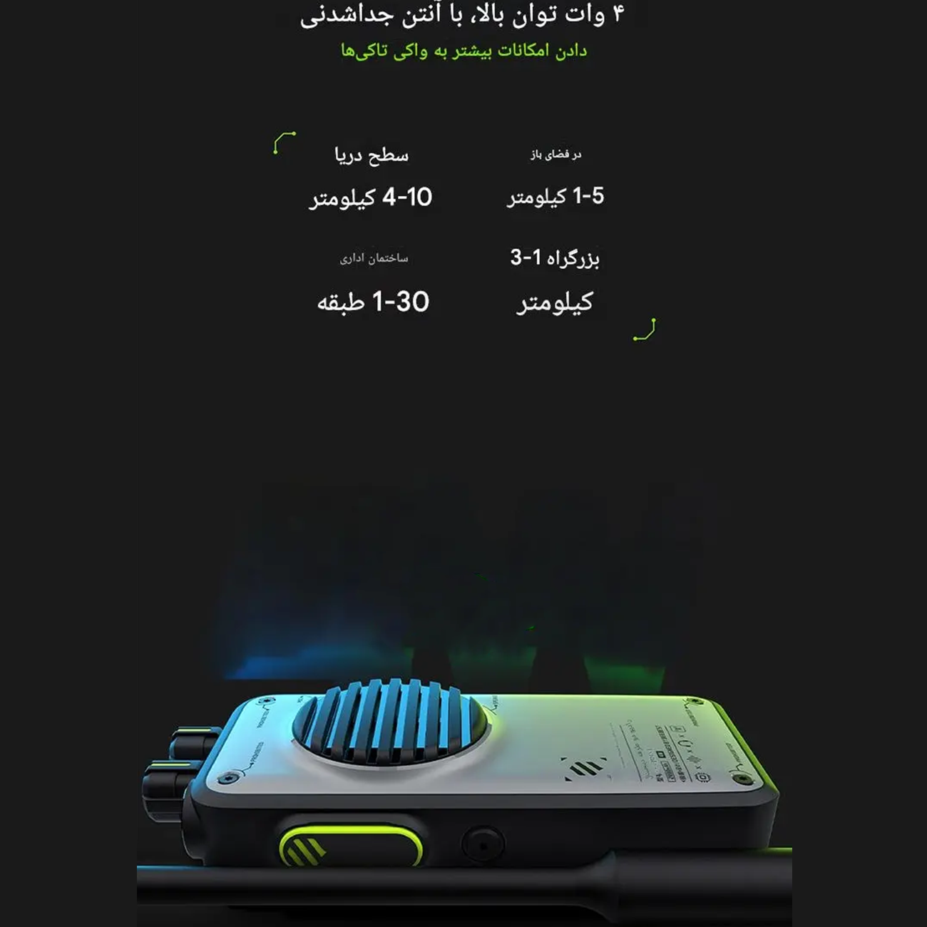 | برد ارتباطی فضای باز | حدود 4 تا 10 کیلومتر |