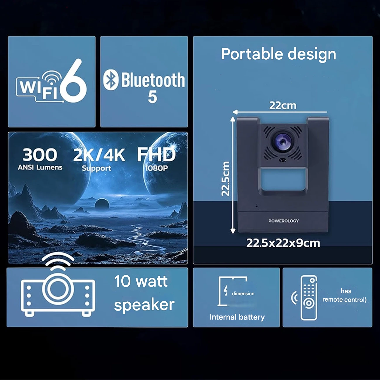 ویدئو پروژکتور هوشمند پاورولوژی Powerology مدل PYM220CGY قابل حمل