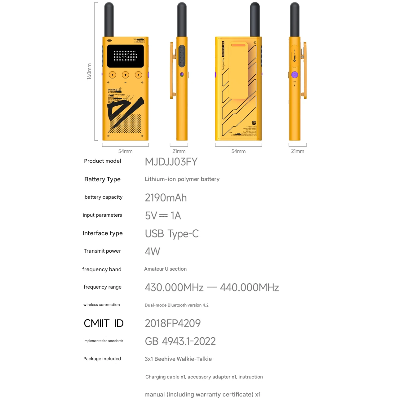 BEEBEST MJDJJ03FY JiFeng Walkie-Talkie 3 Bee Shadow Yellow