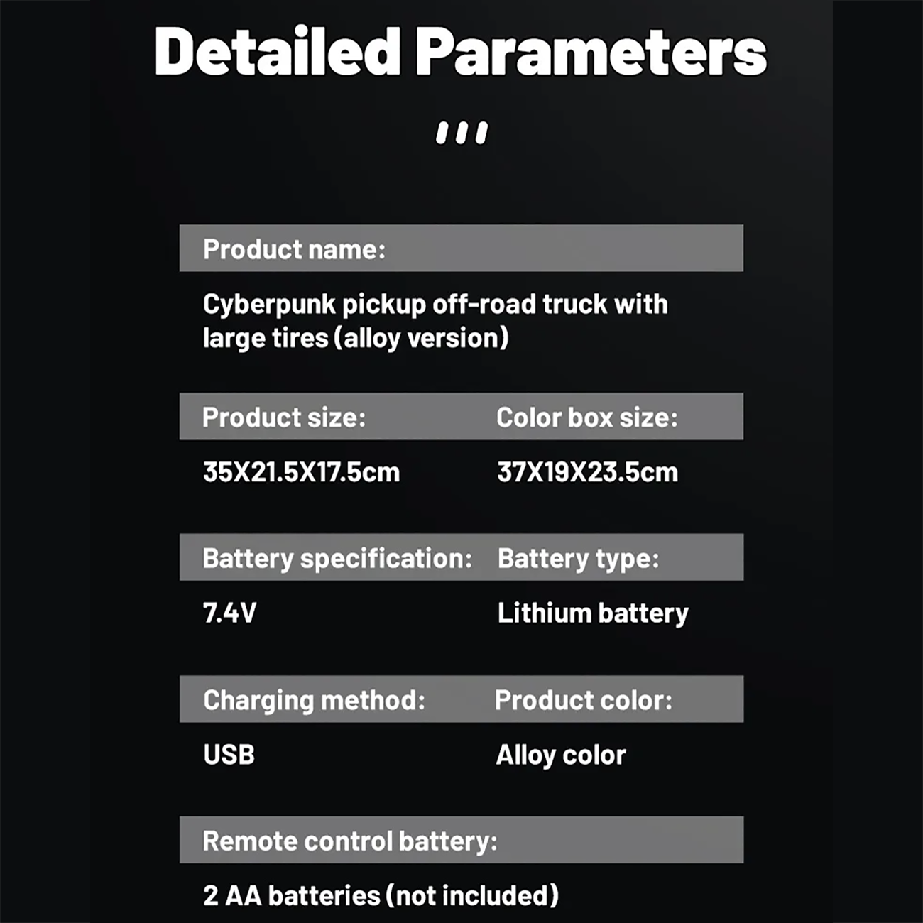 JJJRC-Q202 Cyberpunk Pickup Truck Off-Road Monster Vehicle (Alloy Version)