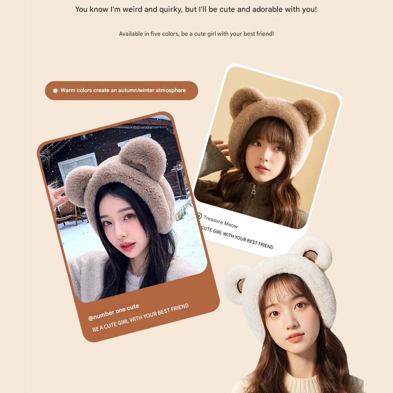 Golovejoy DEZ45 Winter Earmuffs Cute Bear Women