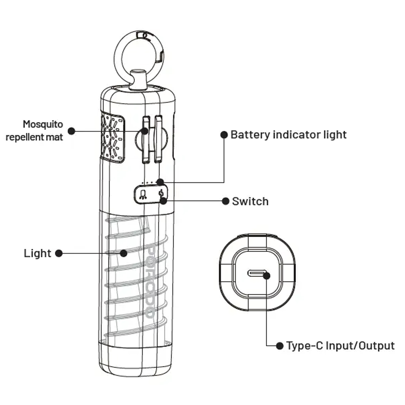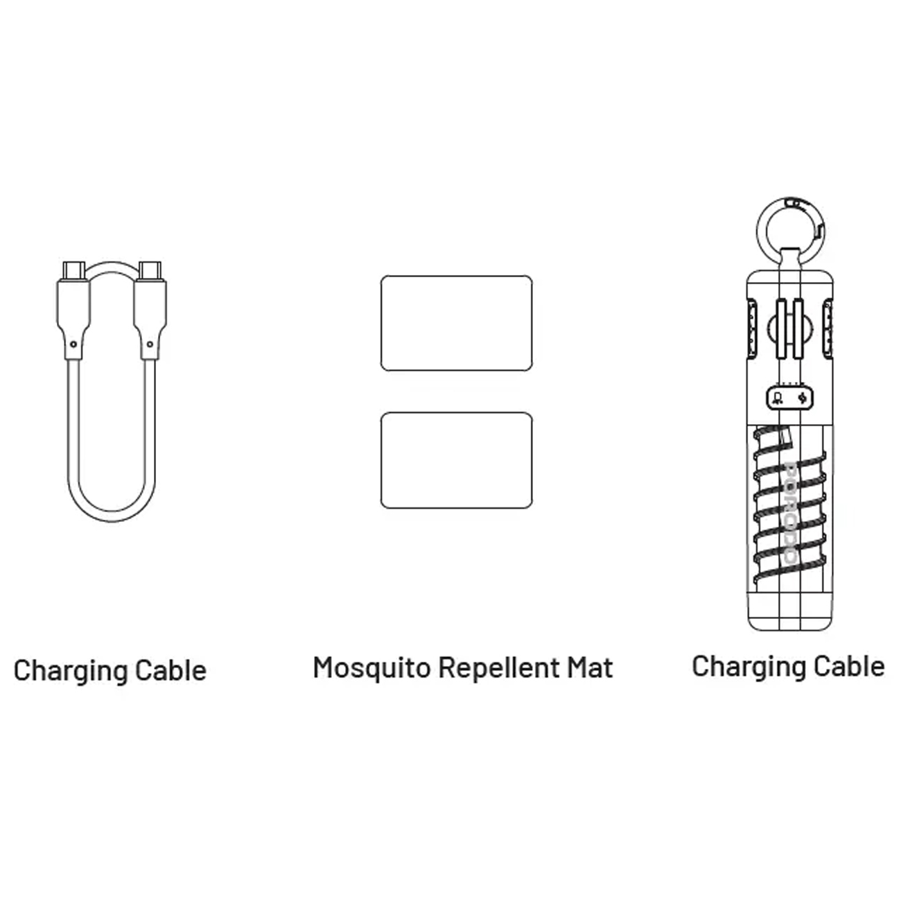 | اقلام همراه | کابل شارژ Type-C، قلاب کارابین، 2 عدد قرص دافع حشرات |