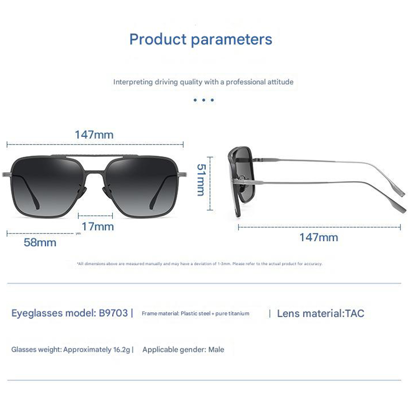 | ابعاد | طول عینک 147 میلیمتر، طول عدسی 51 میلیمتر، عرض عدسی 58 میلیمتر، طول دسته 17 میلیمتر |
