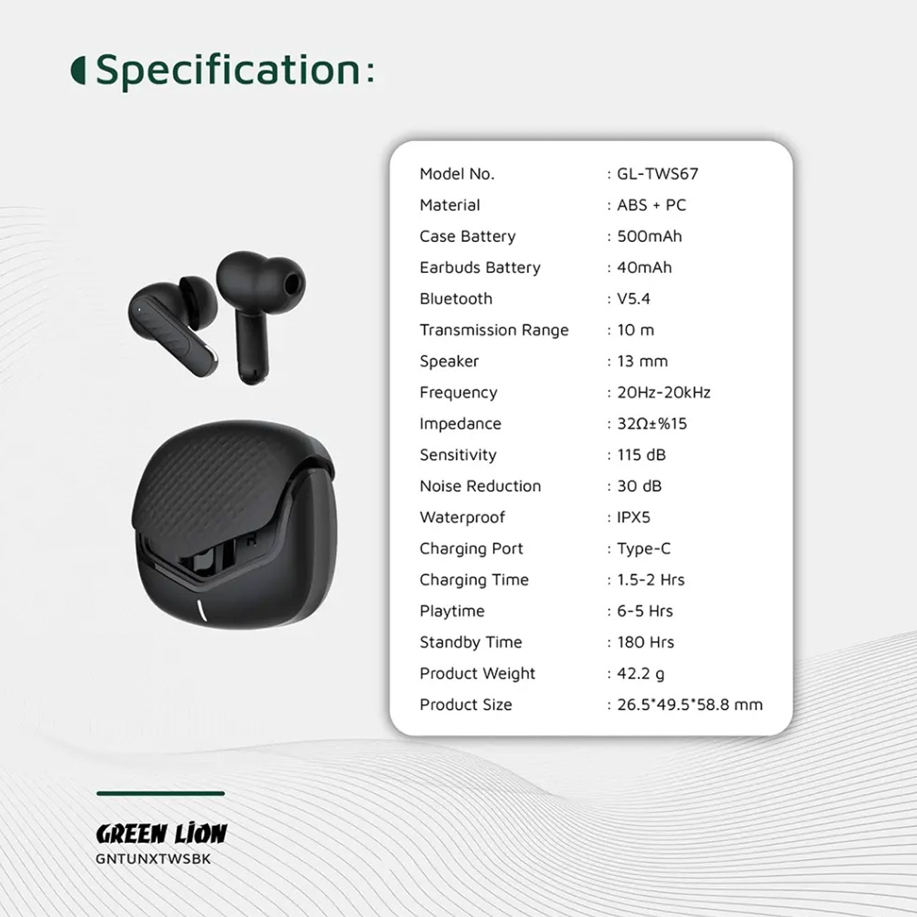 Green Lion Tune X True Wireless Earbuds GL-TWS67 GNTUNXTWS