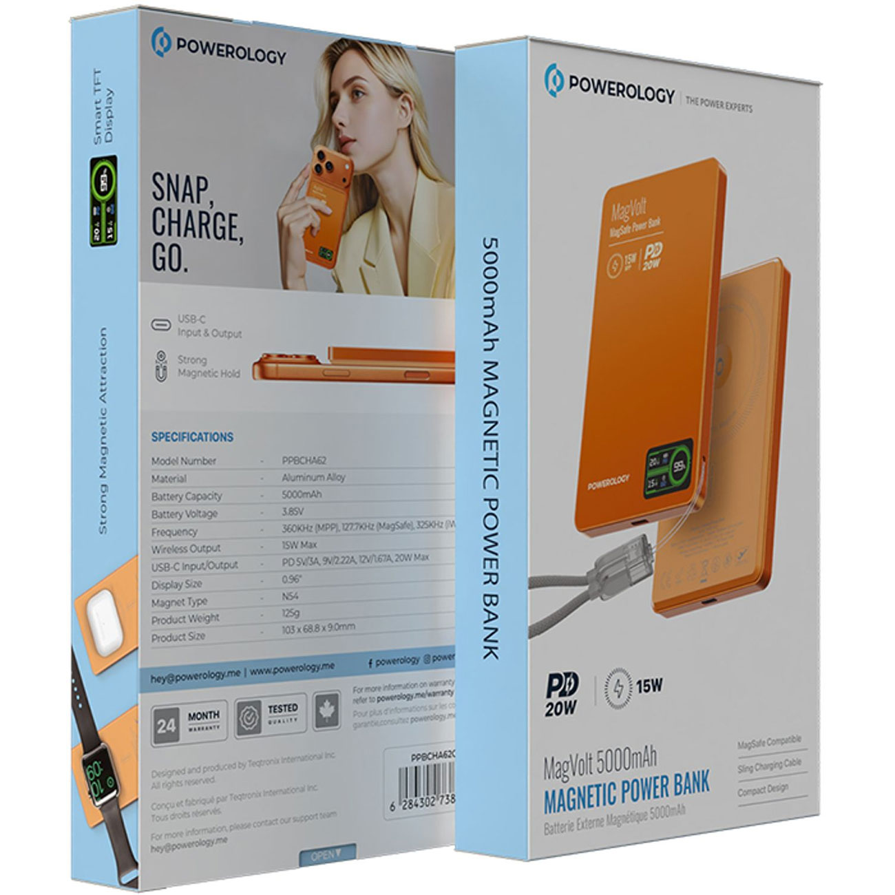 Powerology MagVolt 5000mAh magnetic power bank PPBCHA62BK /PPBCHA62