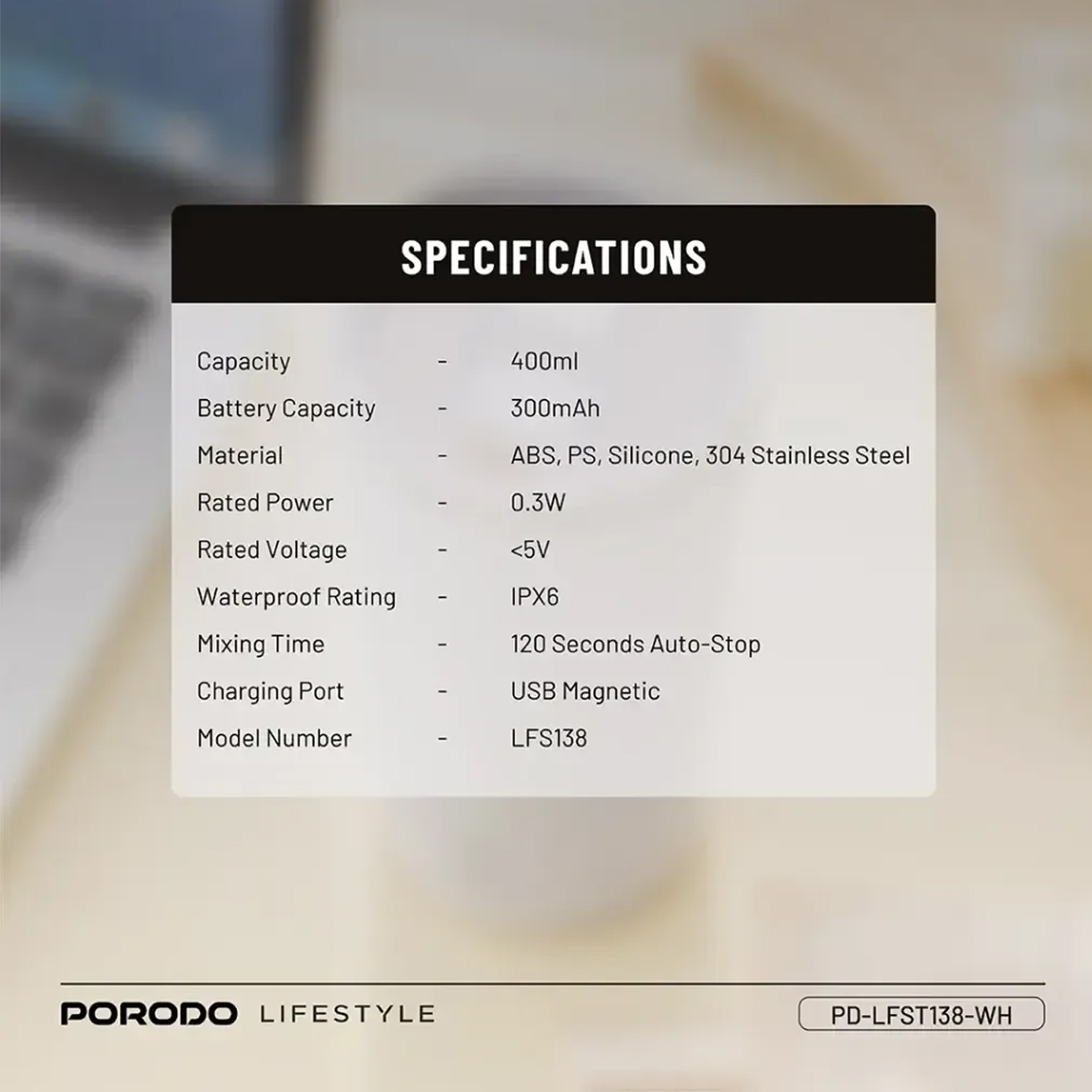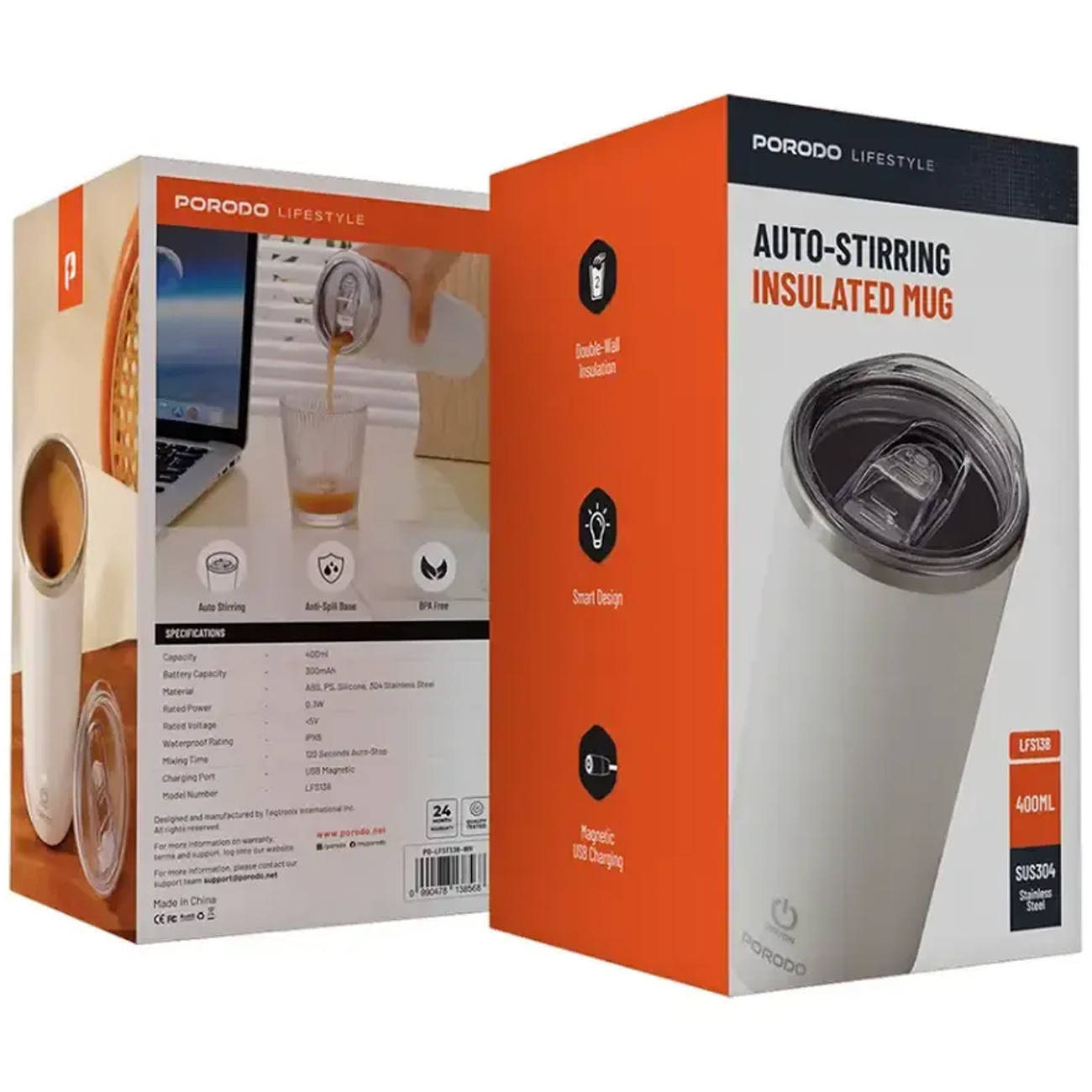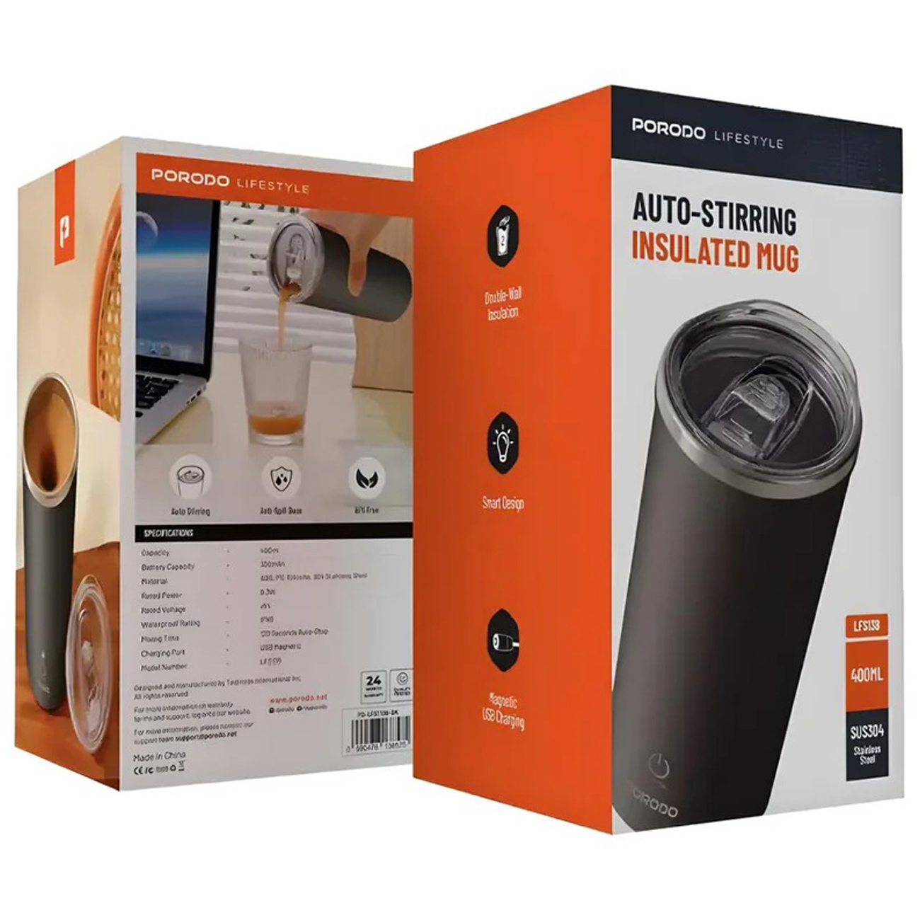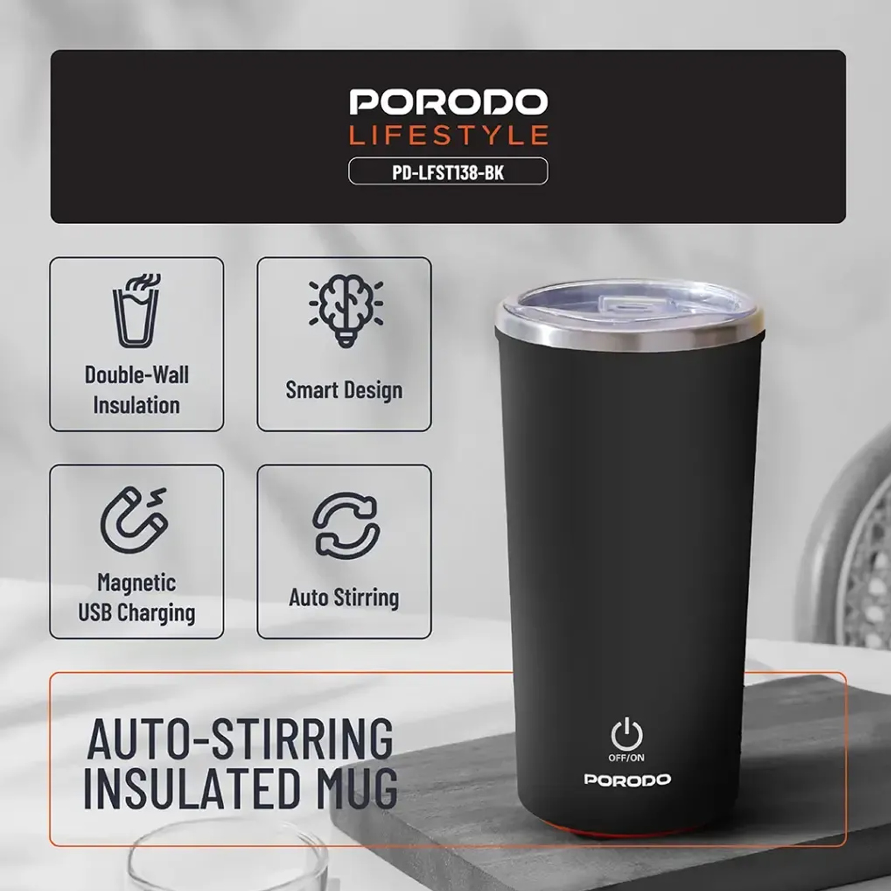 Porodo Lifestyle Auto-Stirring Insulated Mug LFS138 /PDLFST138WH /PDLFST138BK