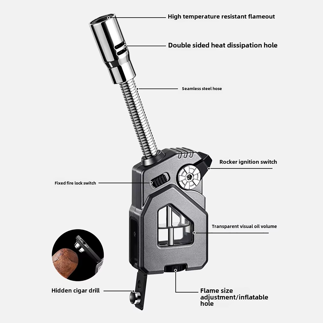 2025 JY JDP03 NEW Metal Hose Cigar Lighter Ignition Tool