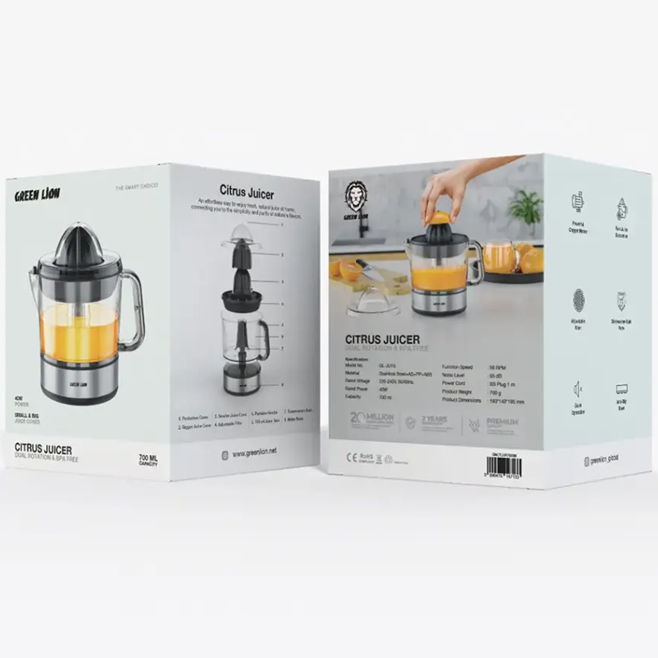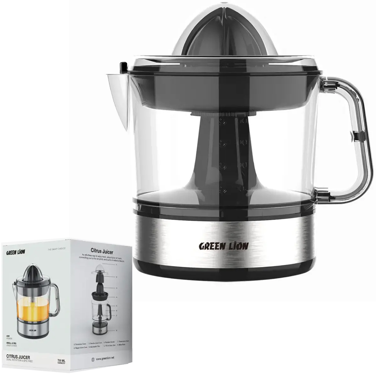 Green Lion GL-JU15 700mL Citrus Juicer with Dual Rotation & BPA Free - GNCTJUR700BK