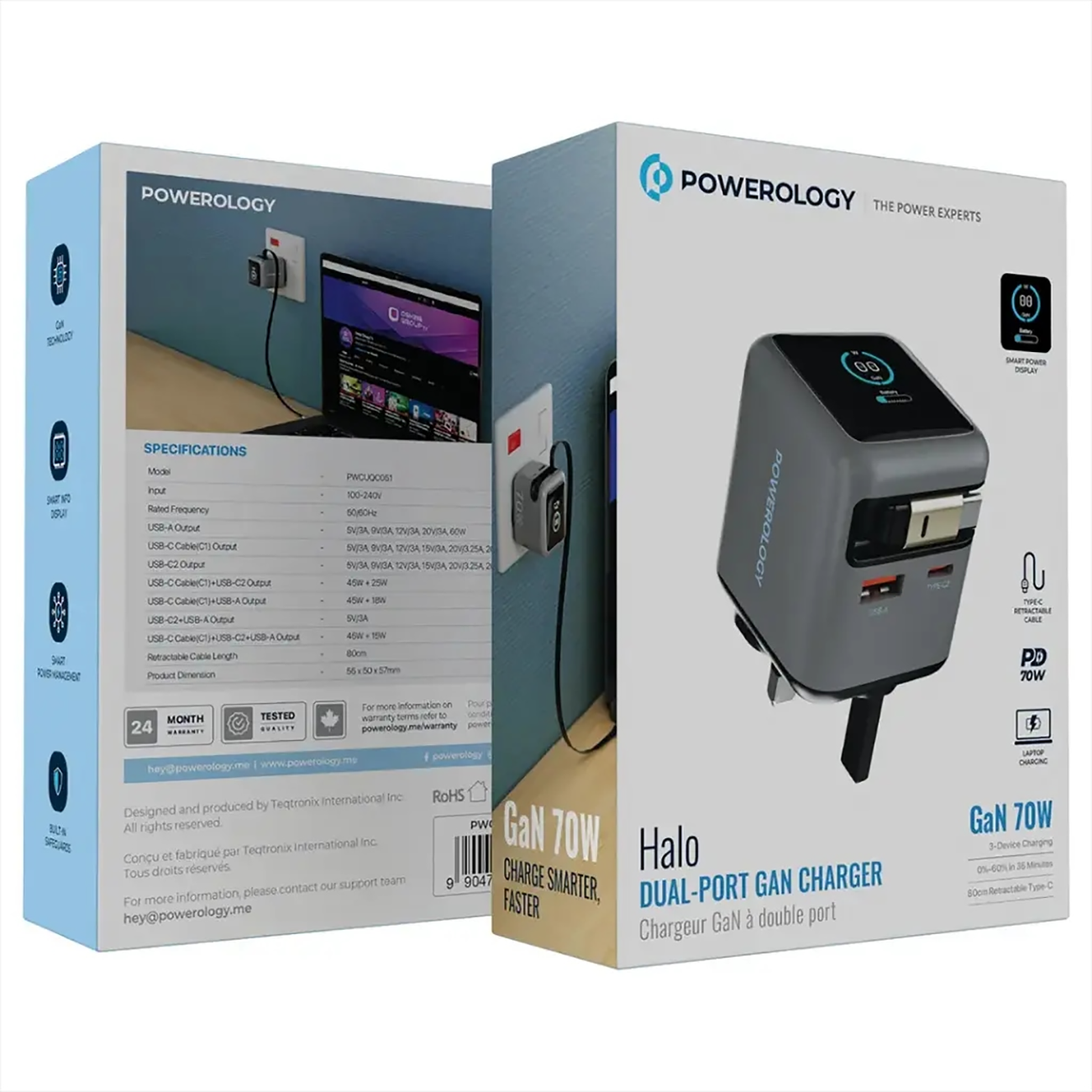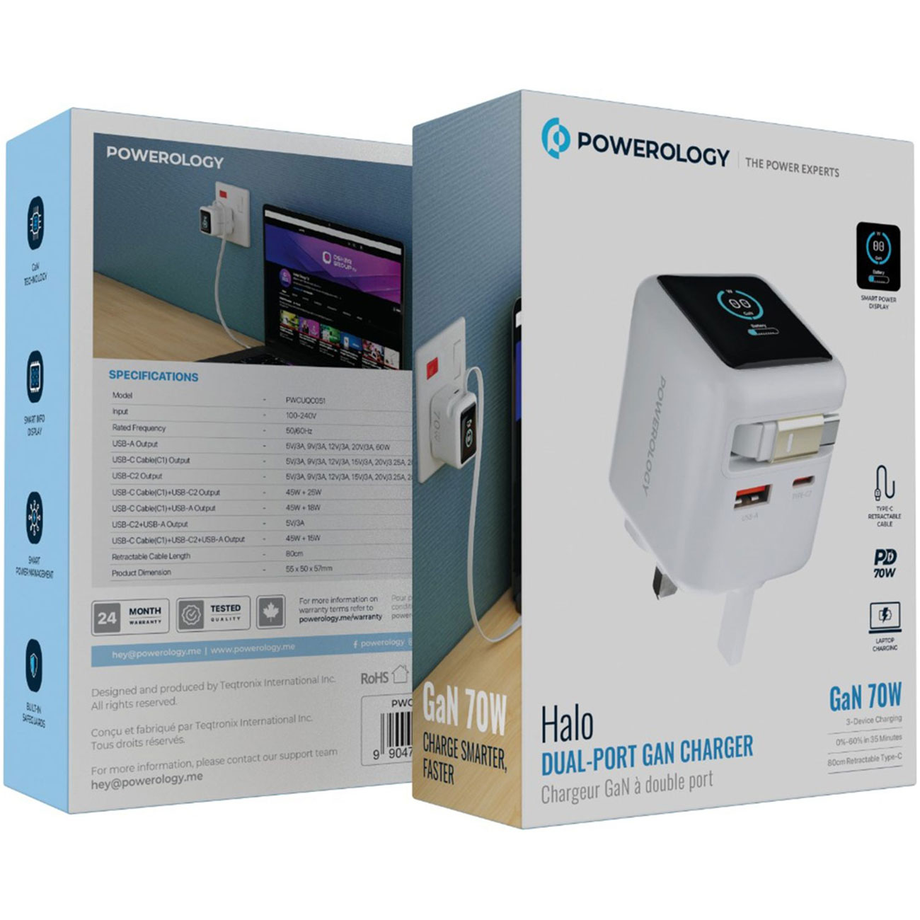 Powerology Halo PWCUQC051WH Dual-Port GaN Charger PWCUQC051 (PWCUQC051GY)