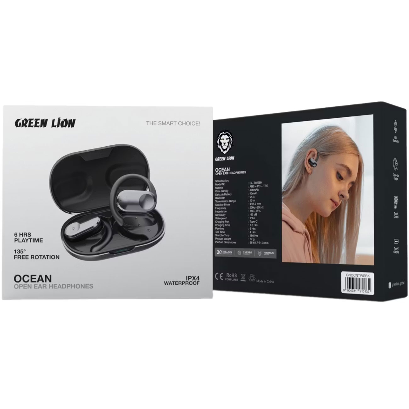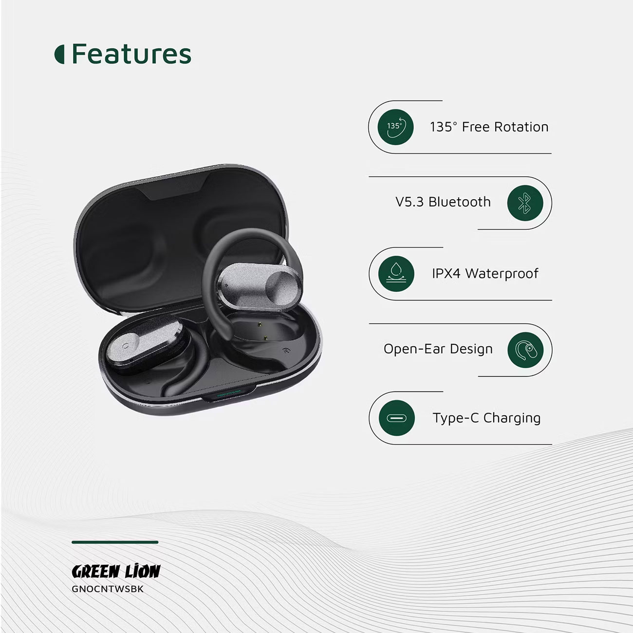 Green Lion OCEAN GL-TWS69 Ocean Open Ear Headphones GNOCNTWSBK
