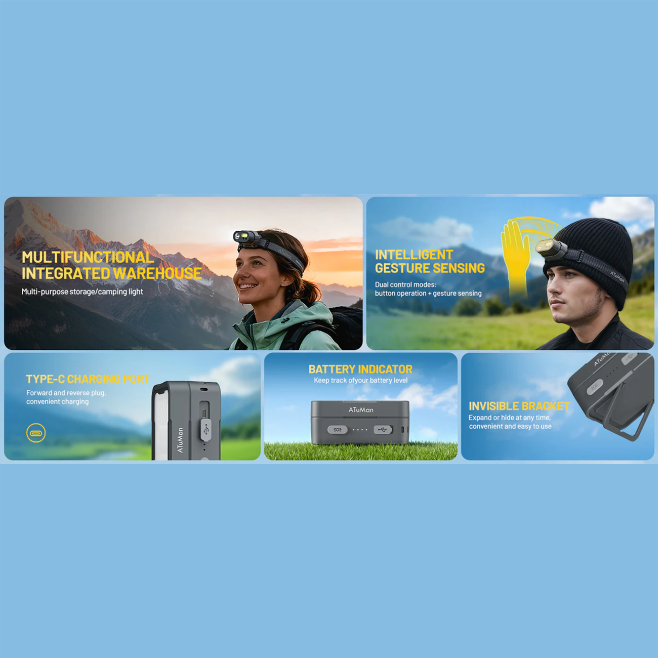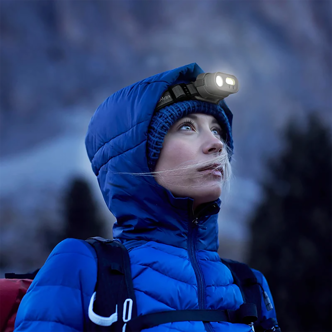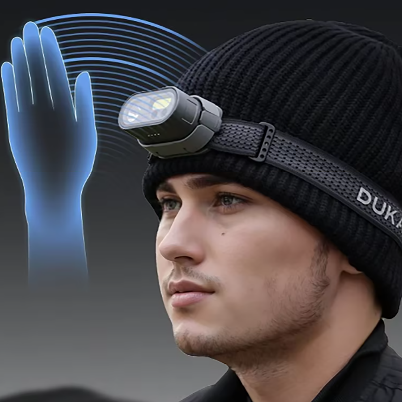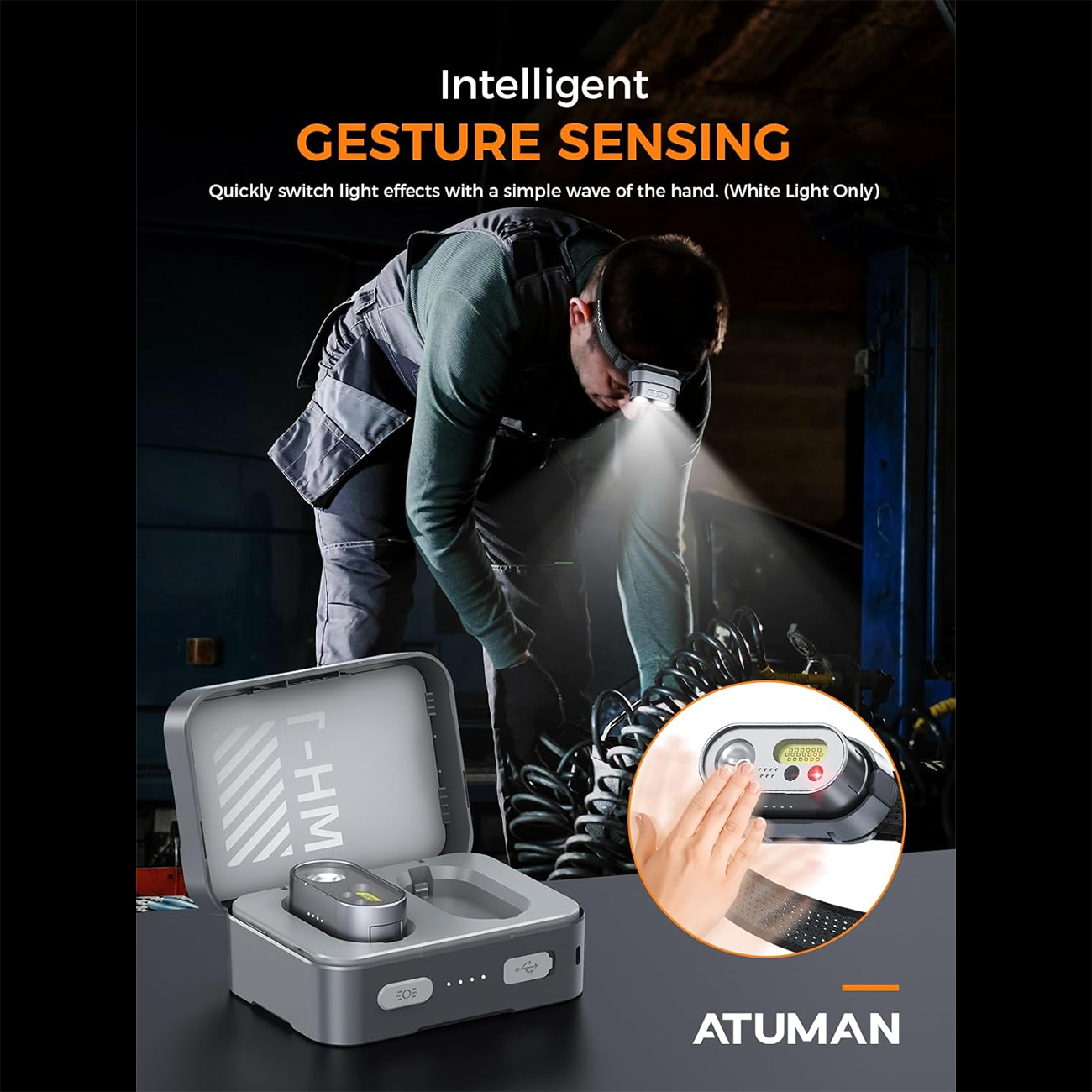 Automan MH1 Smart Headlamp with Dual Controls with Hand and Button, Waterproof Outdoor Flashlight