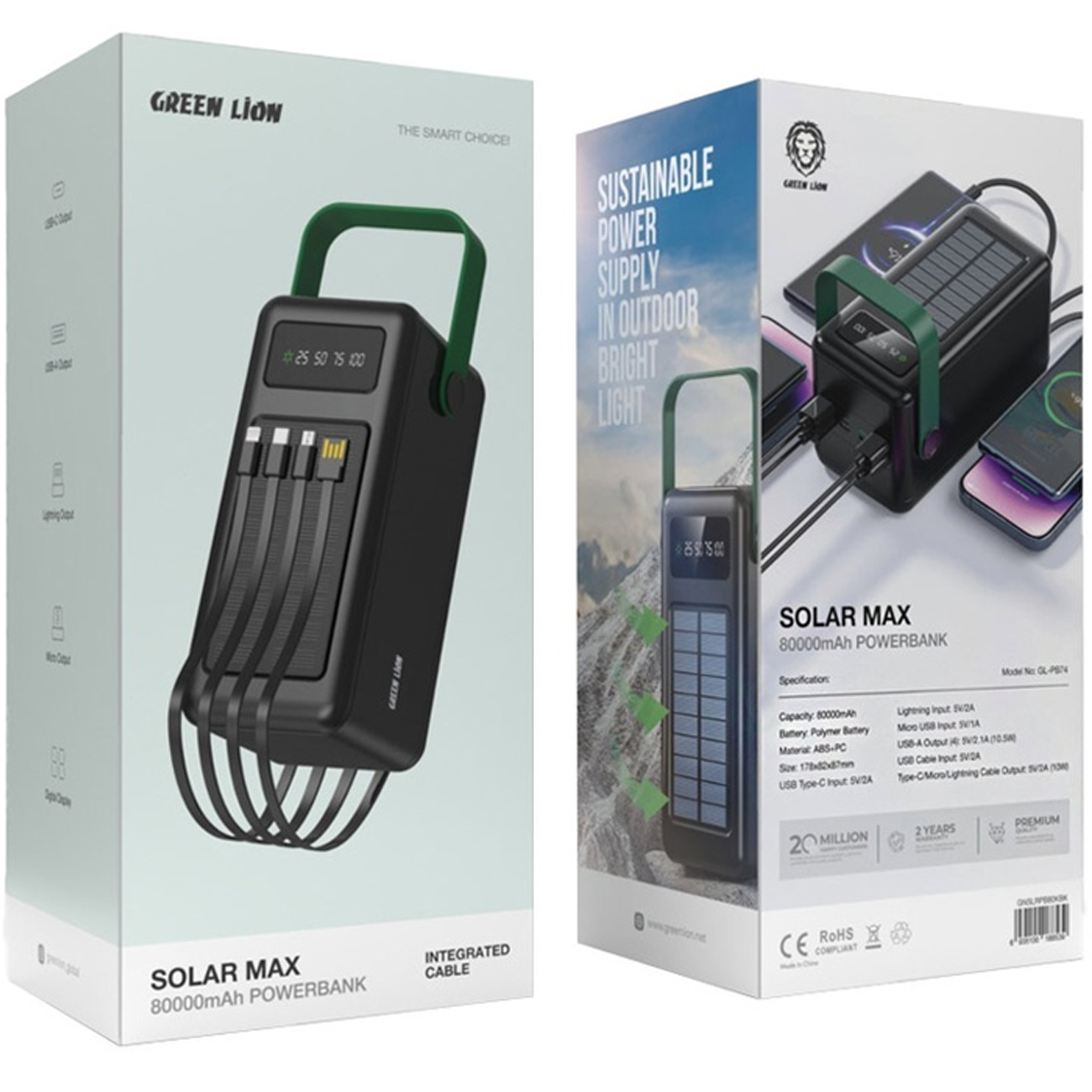 پاور بانک خورشیدی 80000 گرین لاین Green Lion اصل مدل GL-PB74