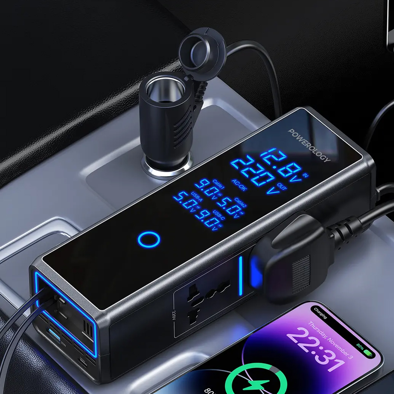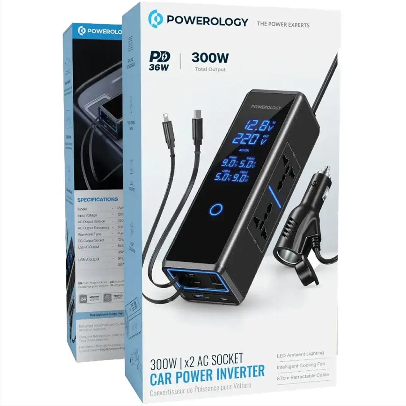 اینورتر فندکی 300 وات پاورولوژی Powerology مدل PWCUQC044 با کابل