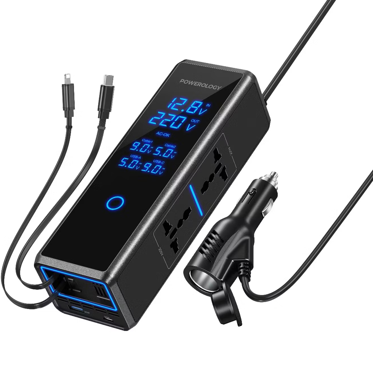 Powerology PWCUQC044 300W x2 AC Socket Car Power Inverter