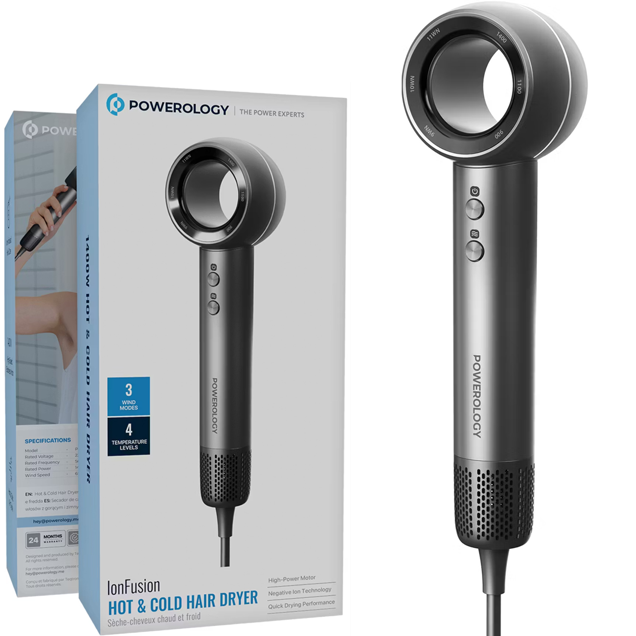 Powerology lonFusion Hot & Cold Hair Dryer PXMLV10GR